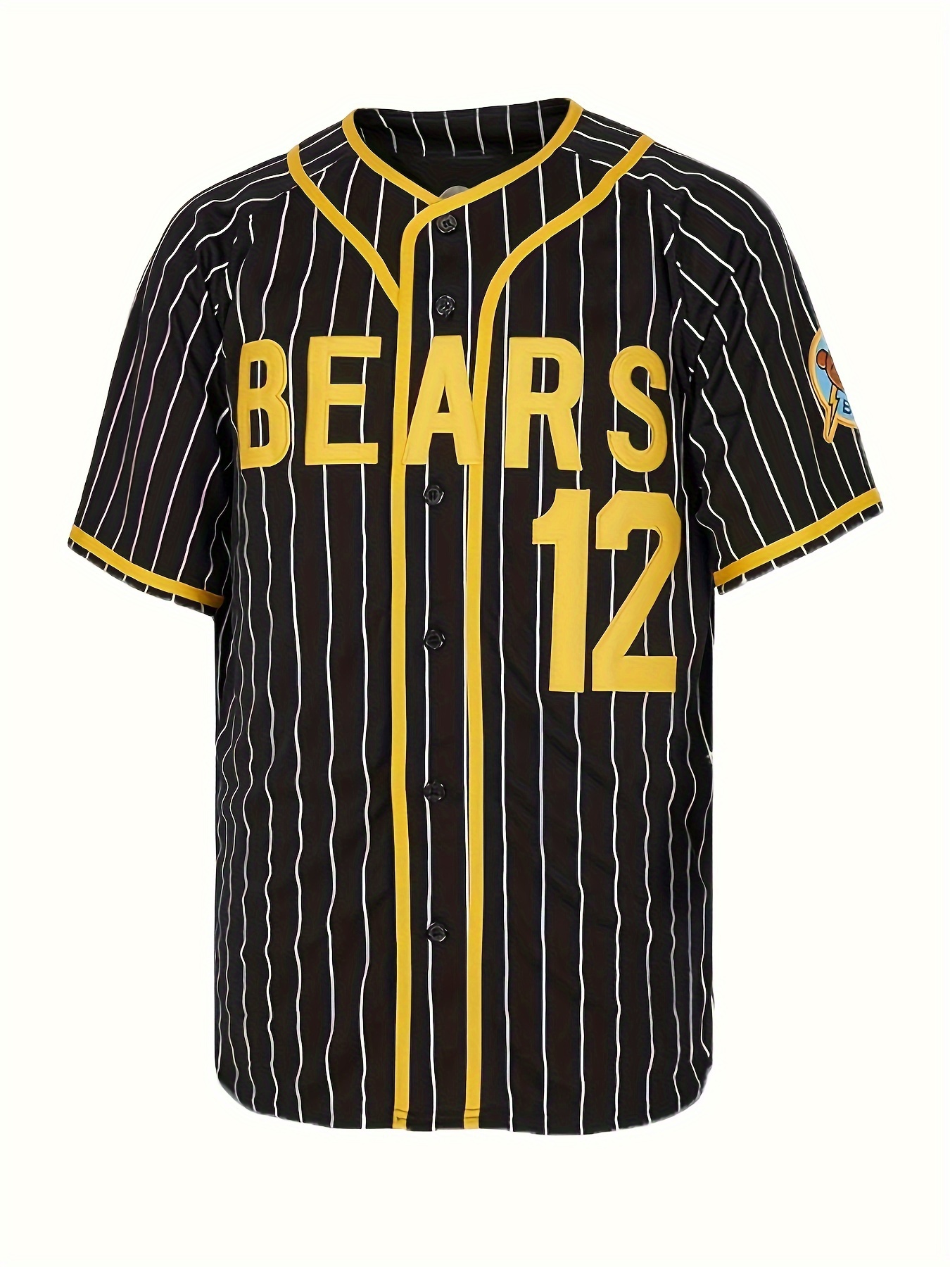 Men's #12 Retro Baseball Jersey - Vintage Black & Yellow Stripes with Lettering, Breathable 100% Polyester V-Neck Short Sleeve Shirt, Loose Fit for Sports, Casual & Holiday Wear (Thanksgiving, Christmas, Valentine's Day)