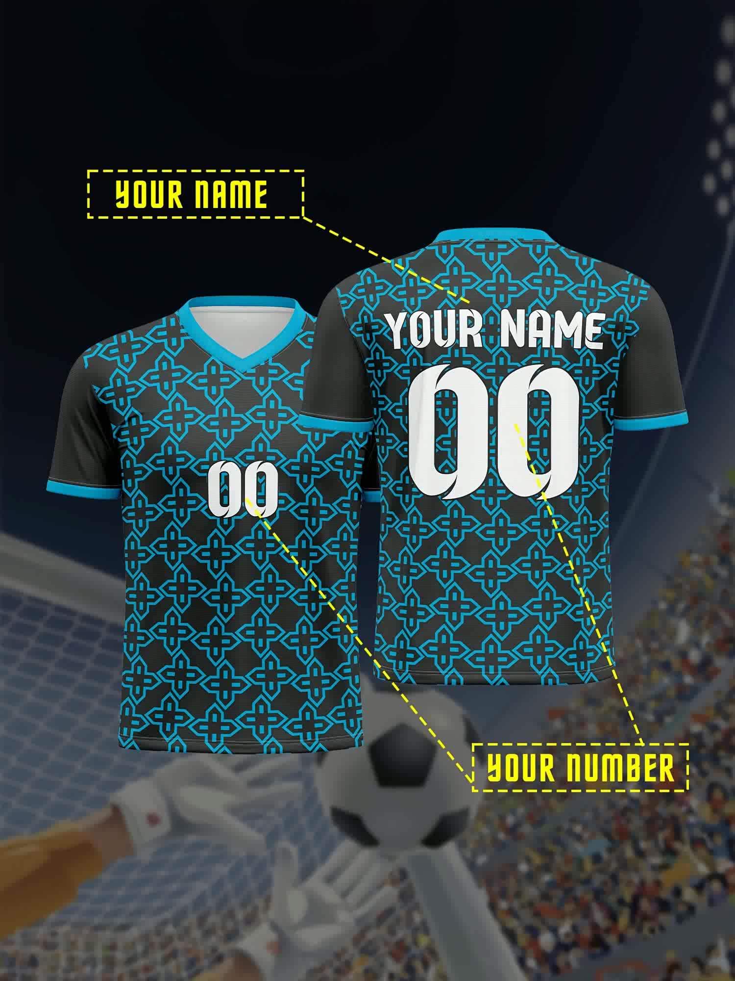 [Customizable Football Jersey] Personalized V-Neck Polyester Kids Football Jersey | Customizable with Name & Number, Regular Fit for Boys & Girls, All-Over Print Knit Fabric, Ideal for Parties & Beach - Spring/Summer/Fall