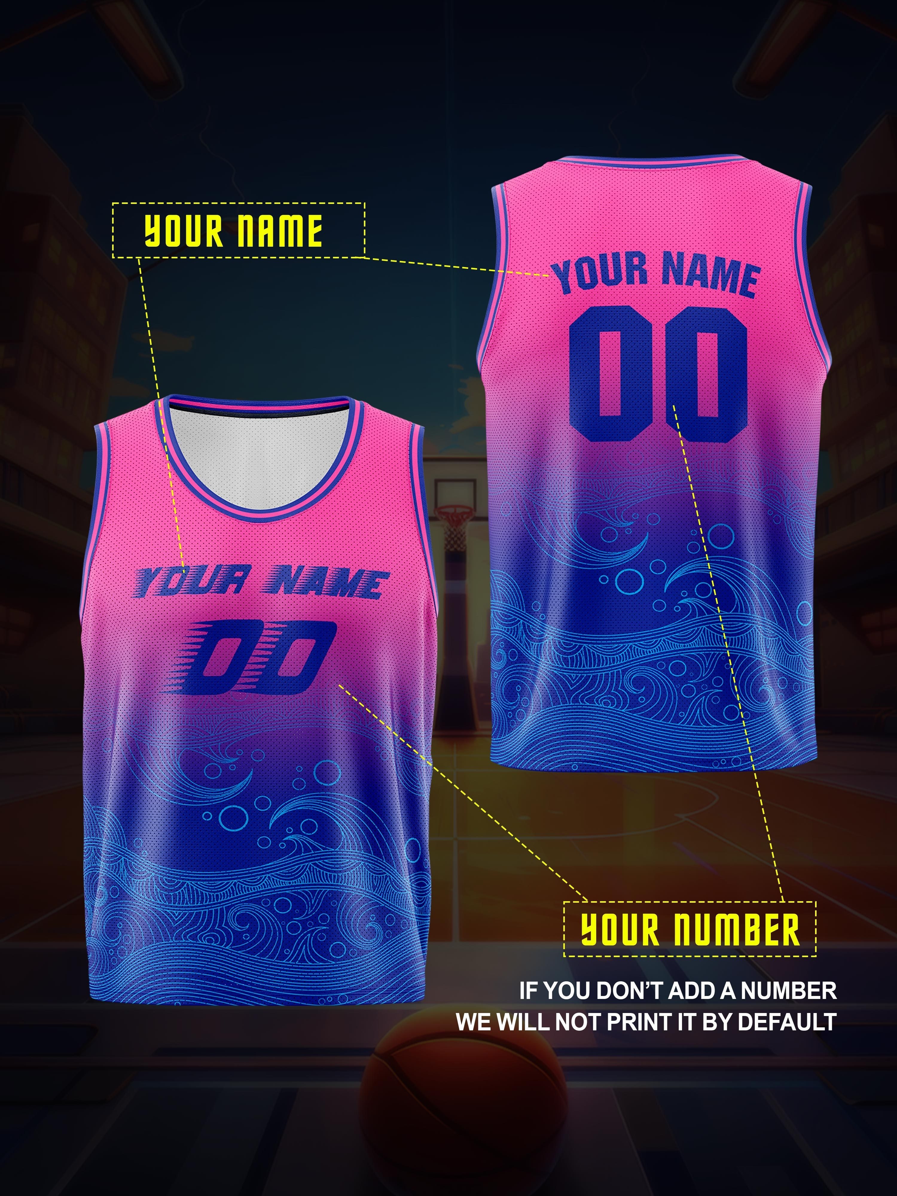 [Loose Basketball Jersey] Custom Sleeveless Basketball Jersey Shirt, Loose & Breathable | Boys Personalized Ocean Waves Pattern Top For Sports & Exercise