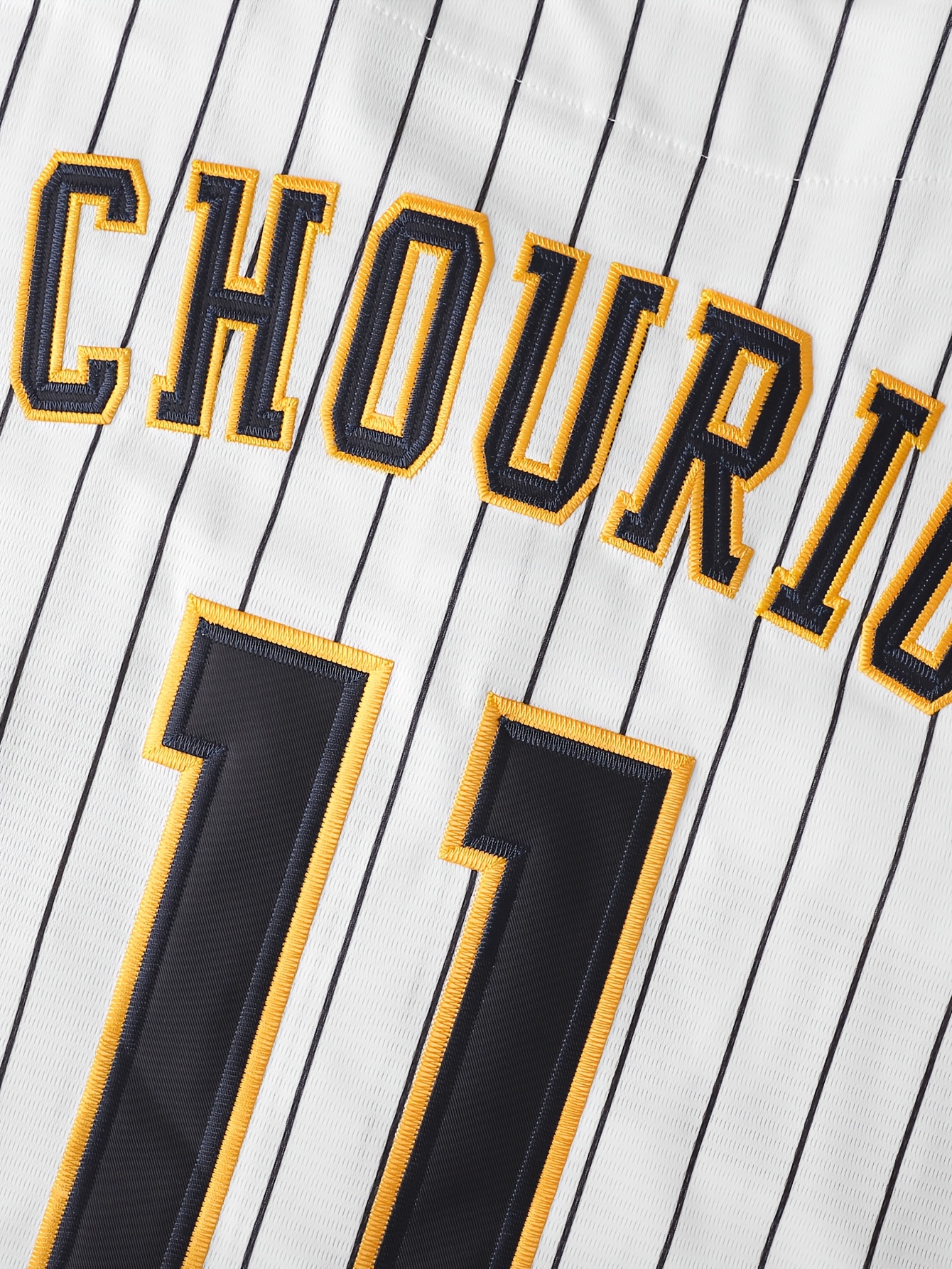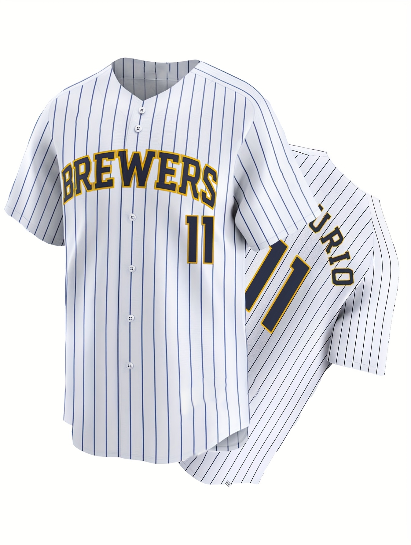 Men'S #11 White Full Embroidered Baseball Jersey, Black Polyester Sports Shirt, V-Neck