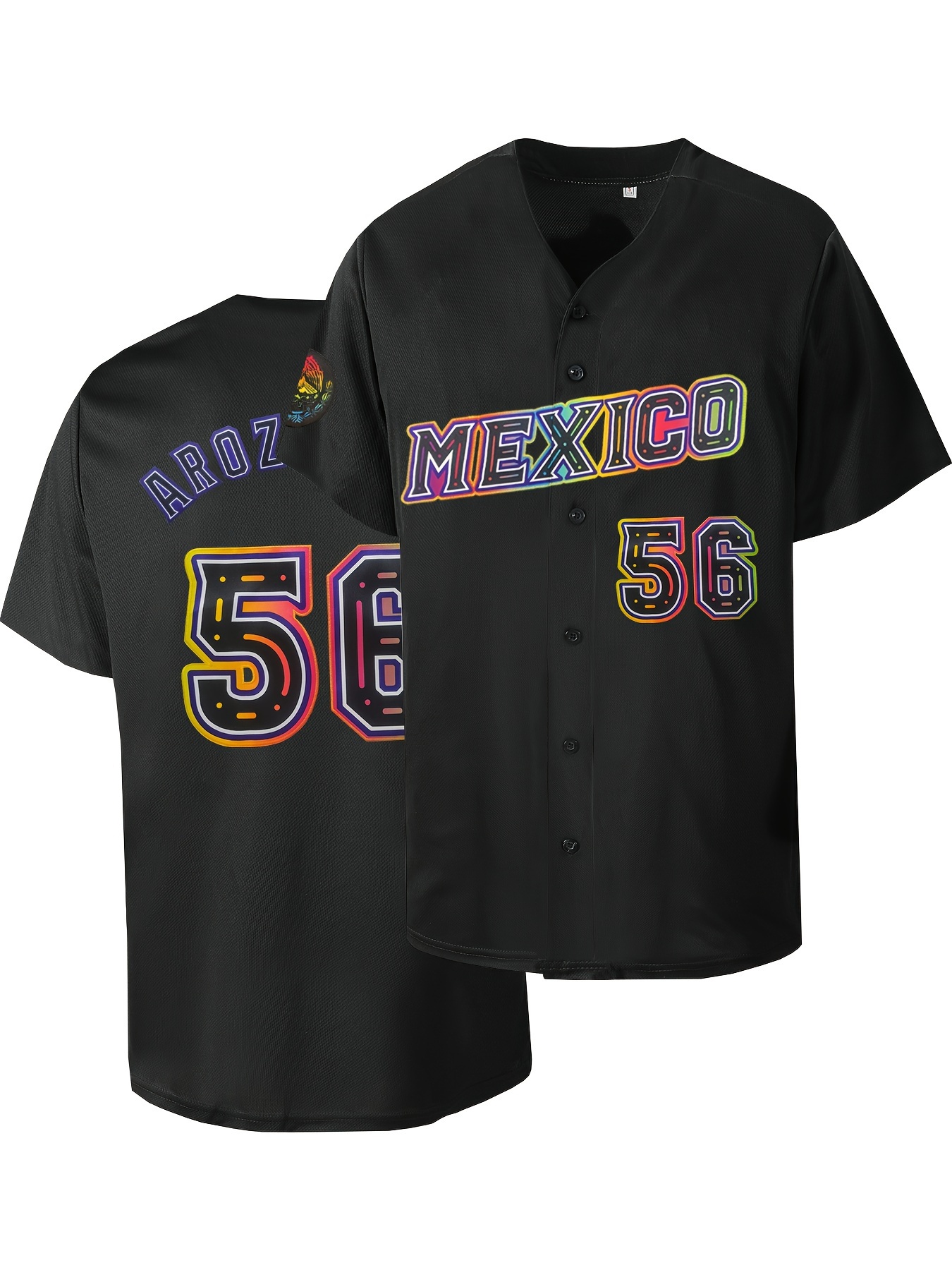 Men'S Classic #56 Mexico Baseball Jersey - Vibrant Retro Embroidery, Breathable Polyester, Short Sleeve V-Neck with Button Closure - Ideal for Training, Competition & Casual Wear
