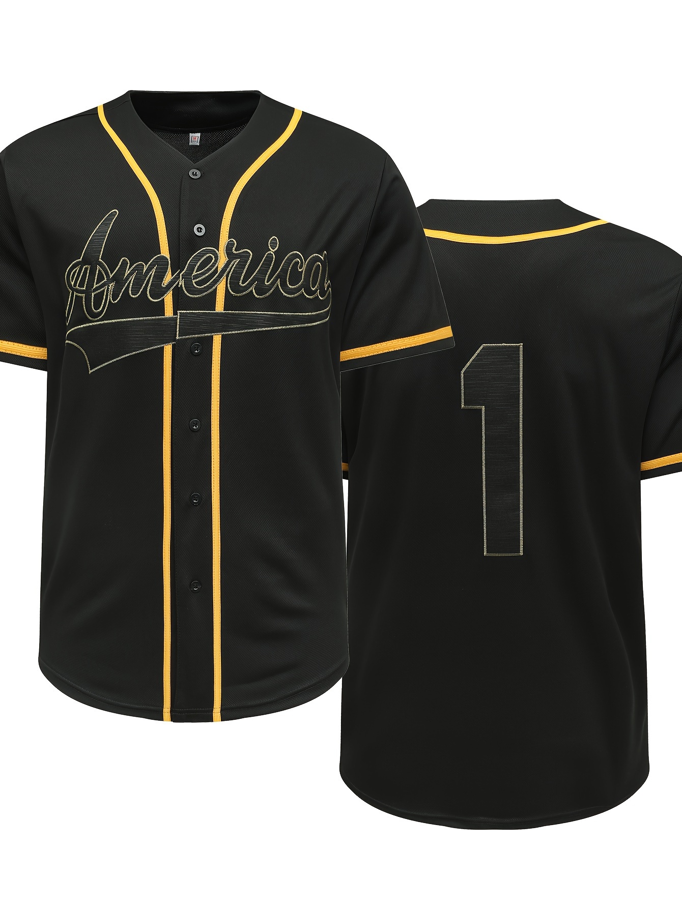 Men's Classic Black #1 Baseball Jersey, 100% Polyester V-Neck Sports Shirt with Embroidered Alphabet Design, Button Closure, Breathable Knit Fabric for Training & Competition, Casual Outdoor Wear, SHLUCKI
