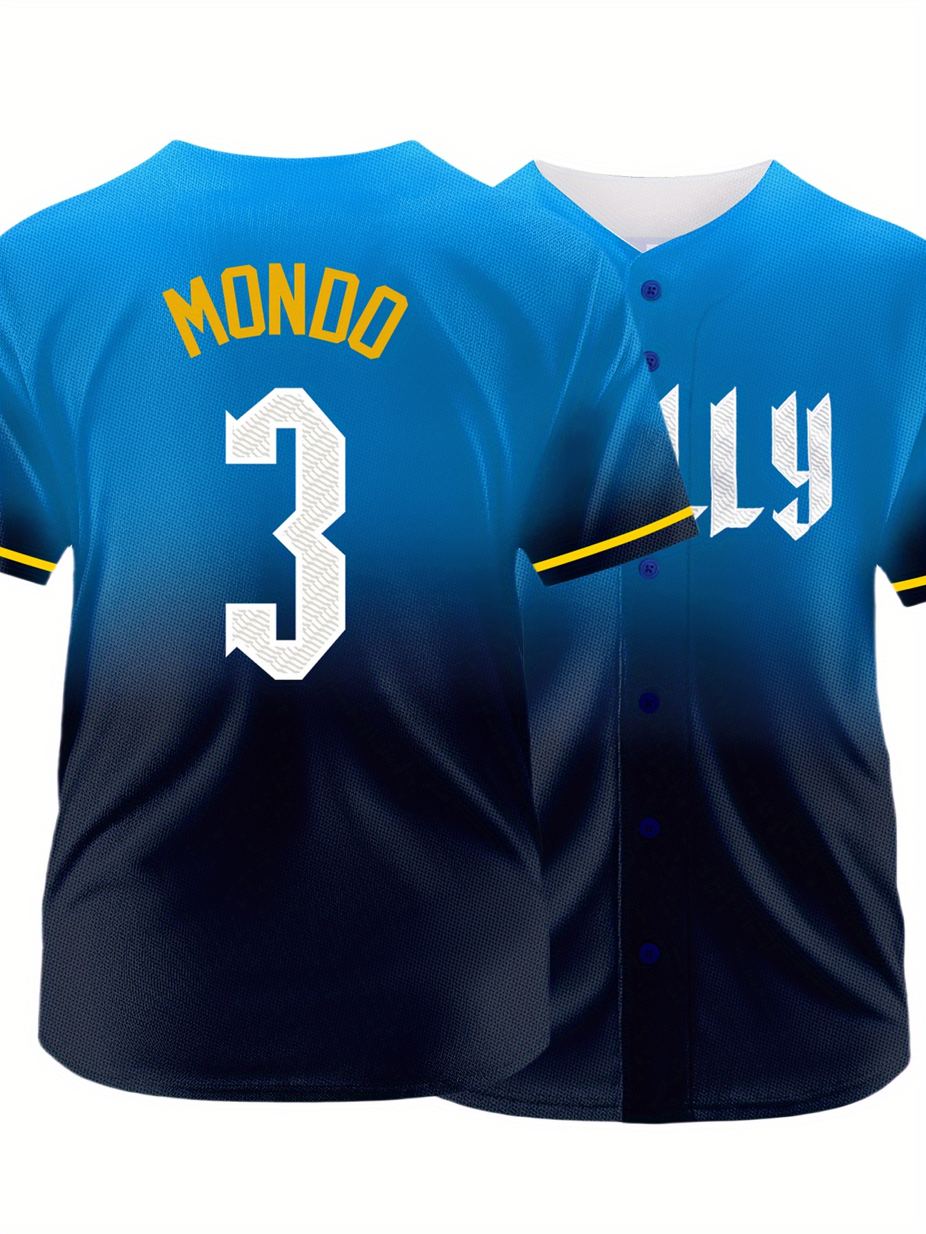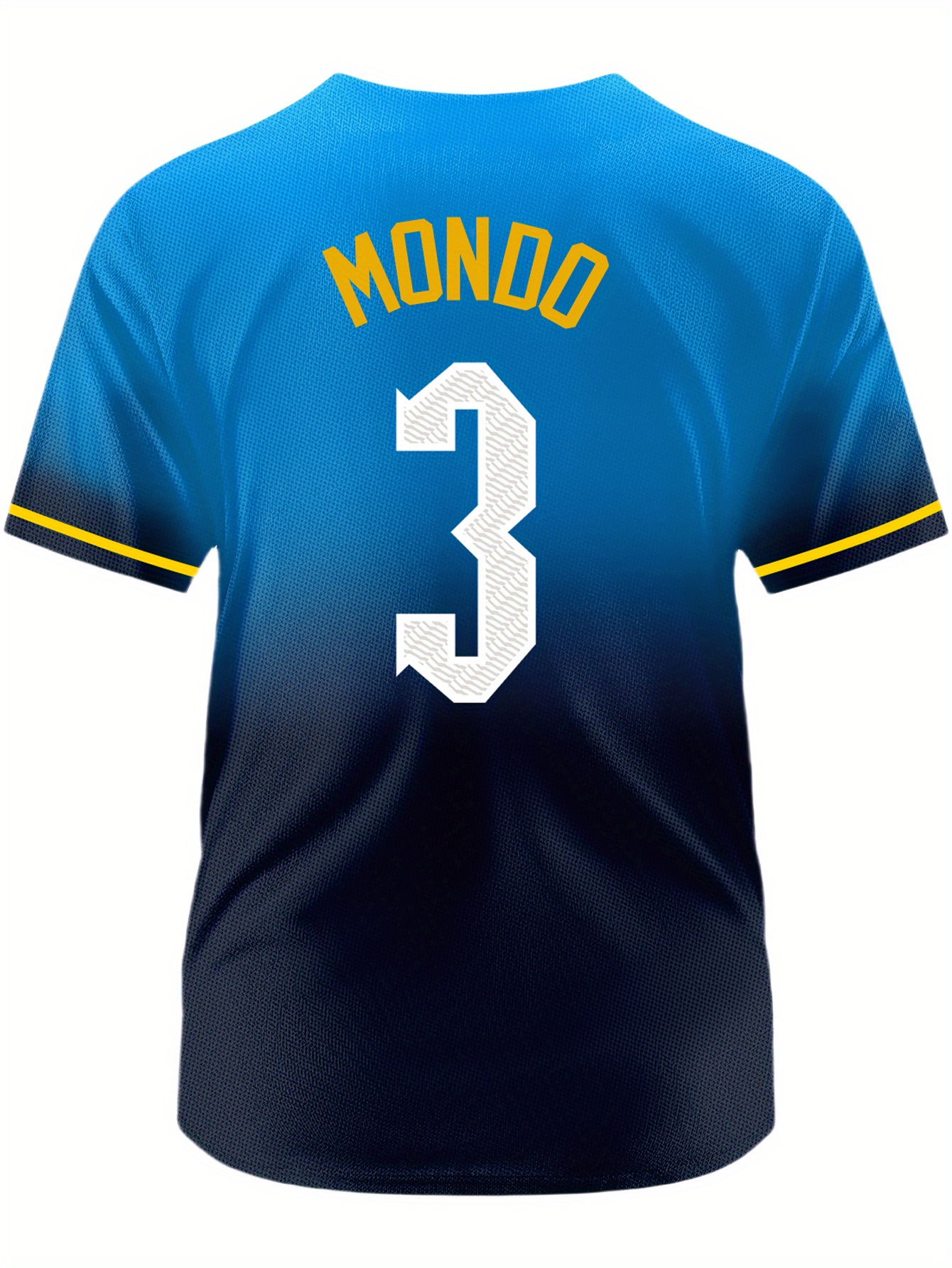 Men's Gradient Color #3 Baseball Shirt - Loose Fit V-Neck Short Sleeve with Embroidered Lettering, Breathable Sportswear for Casual Streetwear, Outdoor Activities & All-Season Comfort (Machine Washable), Athletic Leisurewear, Durable Sportswear