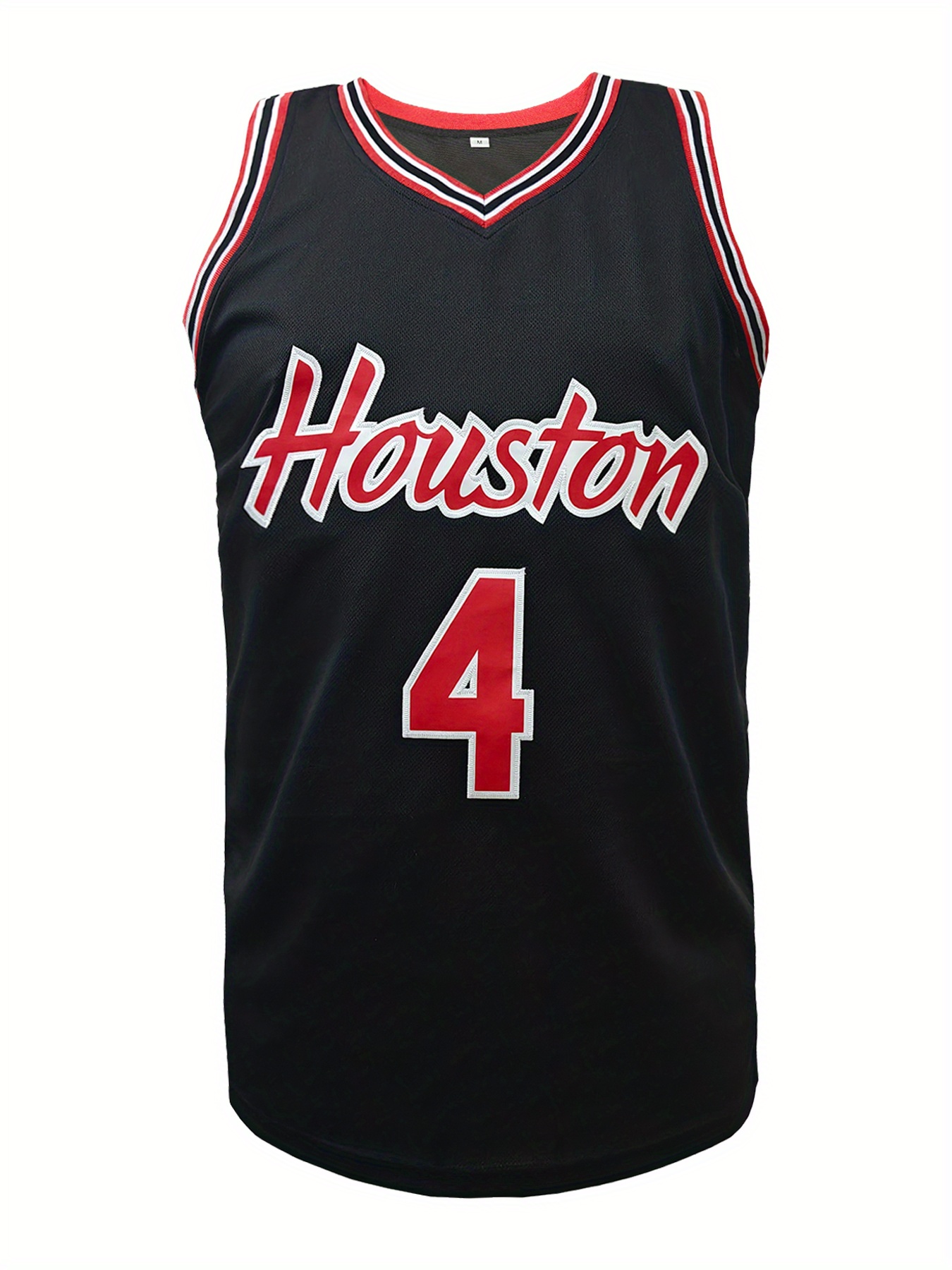 Men's Houston Basketball Jersey #4 Sleeveless Breathable 100% Polyester V-Neck Loose Fit with Lettering & Number for Training, Summer Sports, Casual Wear - Machine Washable
