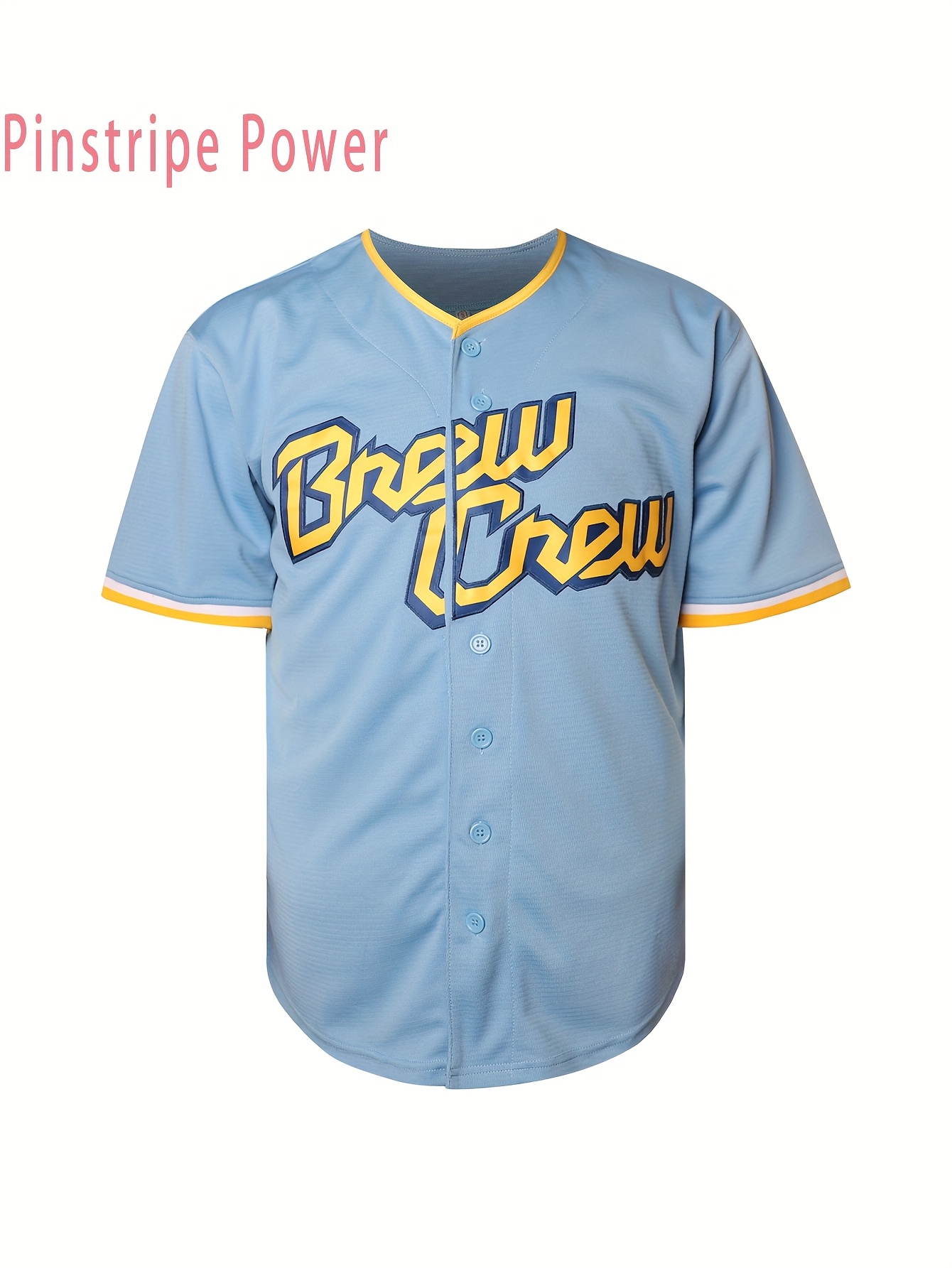 Men's Light Blue #22 Baseball Jersey - Embroidered "Brew" Letter & Number Design, Breathable Button-Up V-Neck, Loose Fit for Training, Competition & Casual Wear (Sizes S-3XL), Casual Occasions | Striped Sports Shirt | Durable Embroidery
