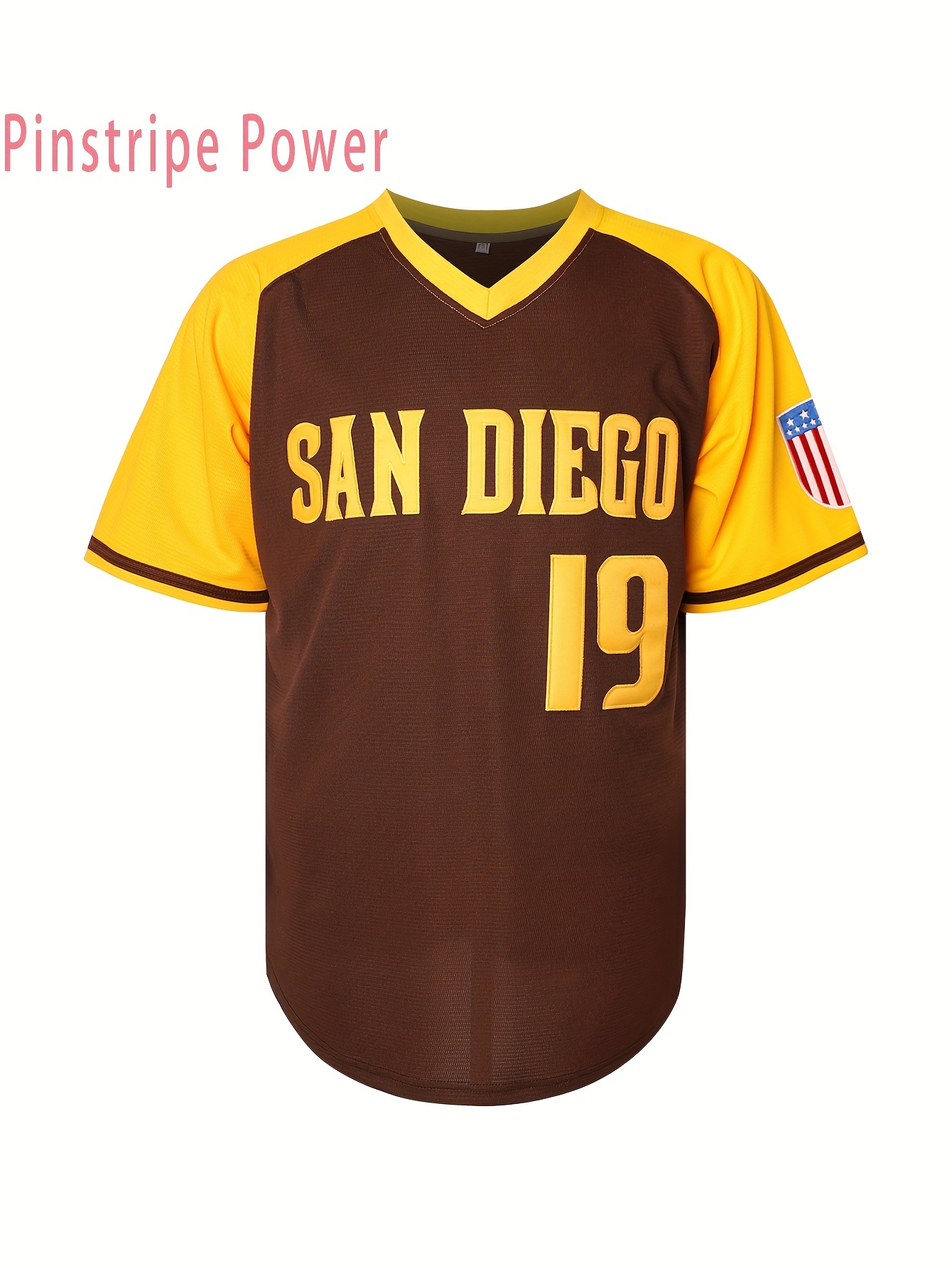 Men's San Diego Letter & Number 19 Baseball Sweatshirt - Brown V-Neck Polyester Pullover, Loose Fit for Casual Team Sports, Outdoor Activities & Parties (Sizes S-3XL), Sports Pullover | Sporty Design | Durable Sportswear