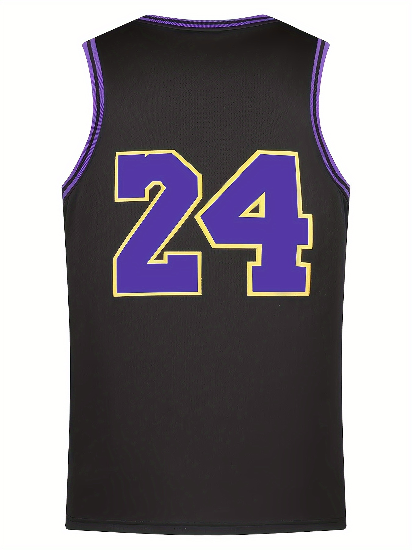 Men'S Stylish Comfy Basketball Top, Classic Letter & Number 24 Embroidered Sleeveless Breathable Tank Top