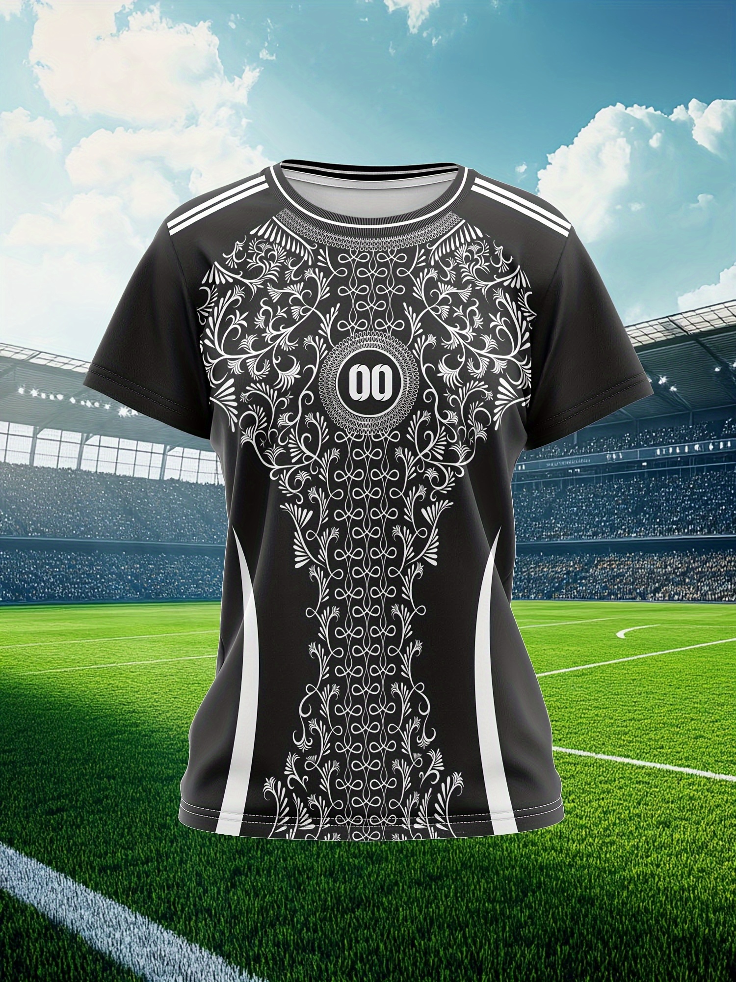 Personalized Women'S Plus Size Soccer Jersey - Custom Name & Number, Black with White Floral Design, Breathable Summer Sports T-Shirt for Casual or Team Wear, Soccer Shirts, Team Uniform, Detailed Print, Quality Print Shirt