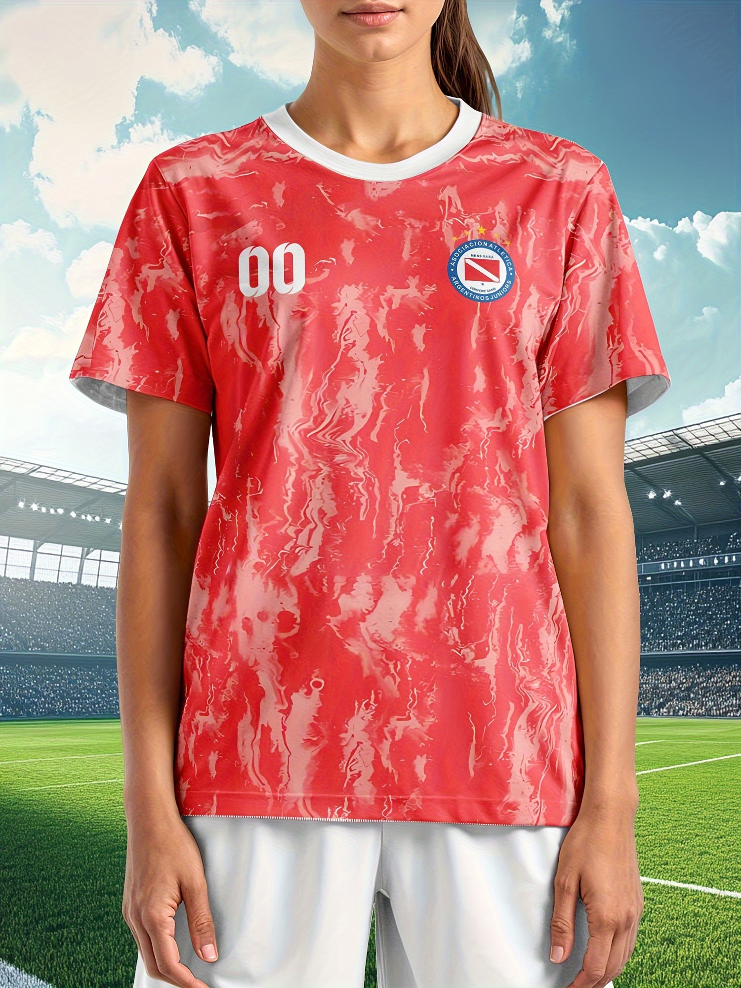 Women's Custom Soccer Jersey Personalized Name & Number - Two-Tone Red/White Athletic top - Non-Stretch Fabric for Soccer, Baseball, Gym - Custom Sports Apparel Gift for Female Players, Outdoor Sports Attire, Vibrant Stripe Design, Durable Sportswear