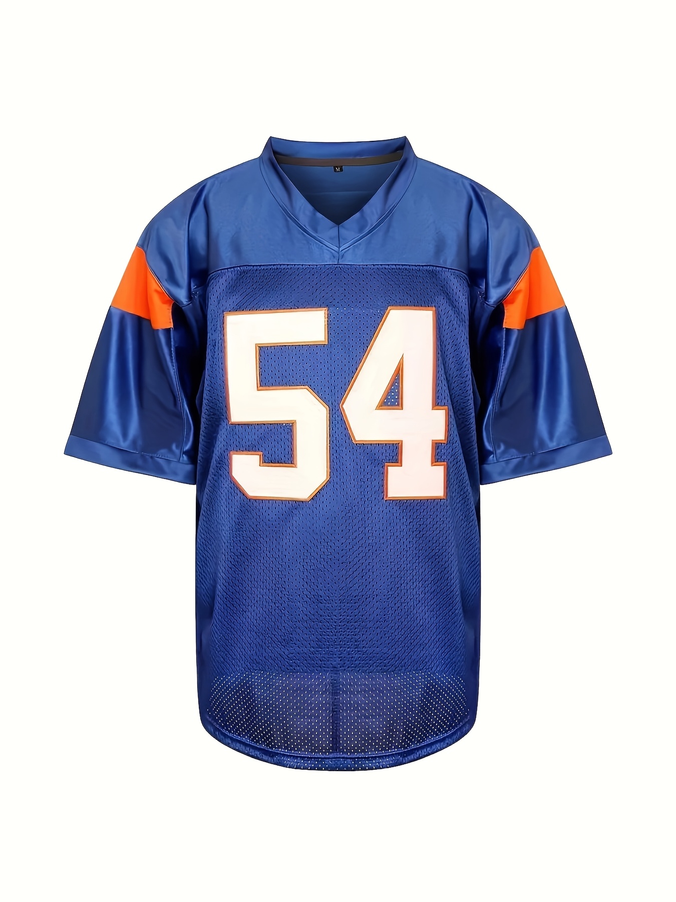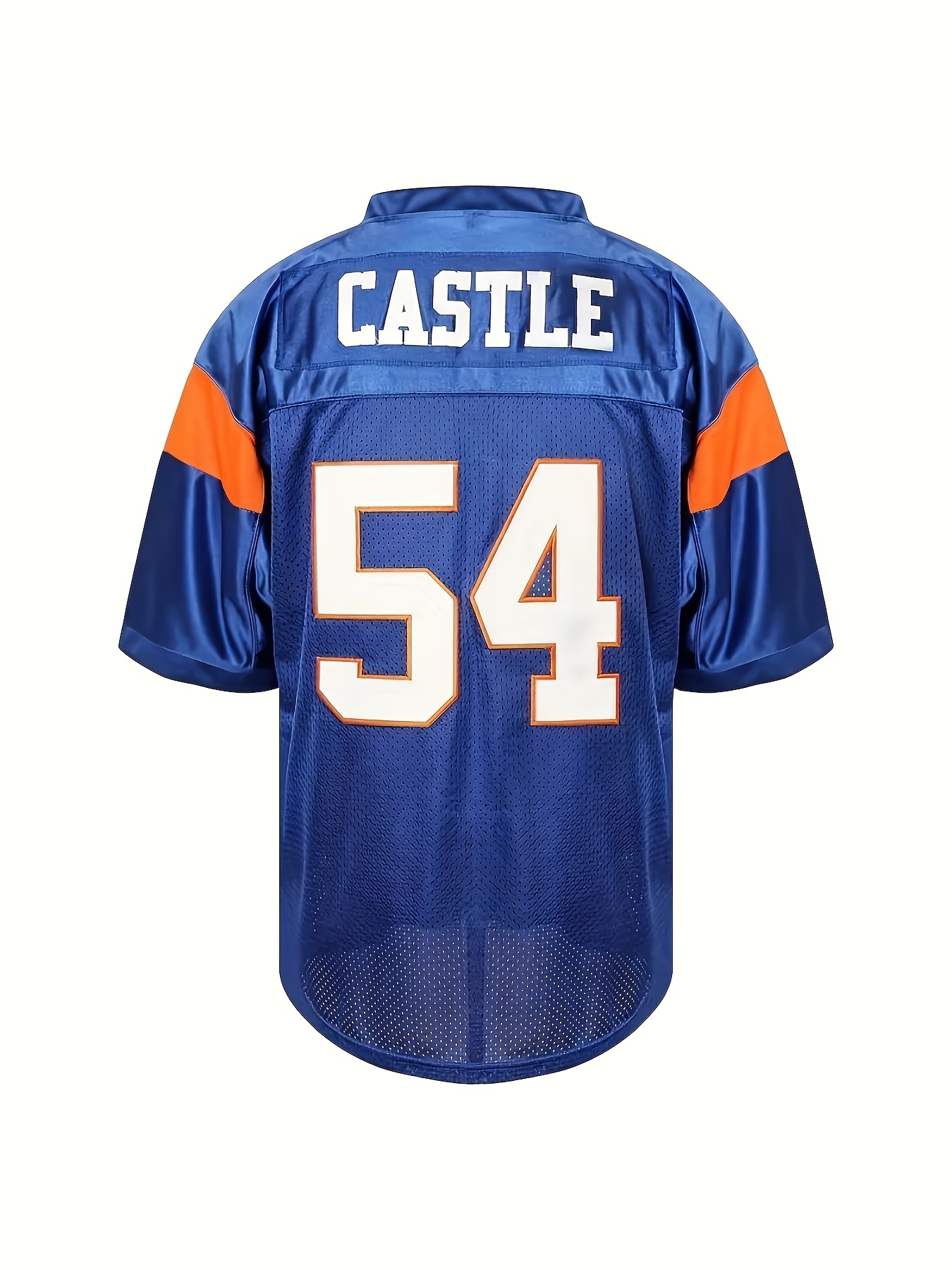 1pc Men'S Polyester V-Neck American Football Jersey - Loose Fit Short Sleeve Sports Shirt with Embroidered #54 & CASTLE, Knit Fabric for Casual, Training, Hiking & Outdoor Activities, Universal Fit for Teens & Adults