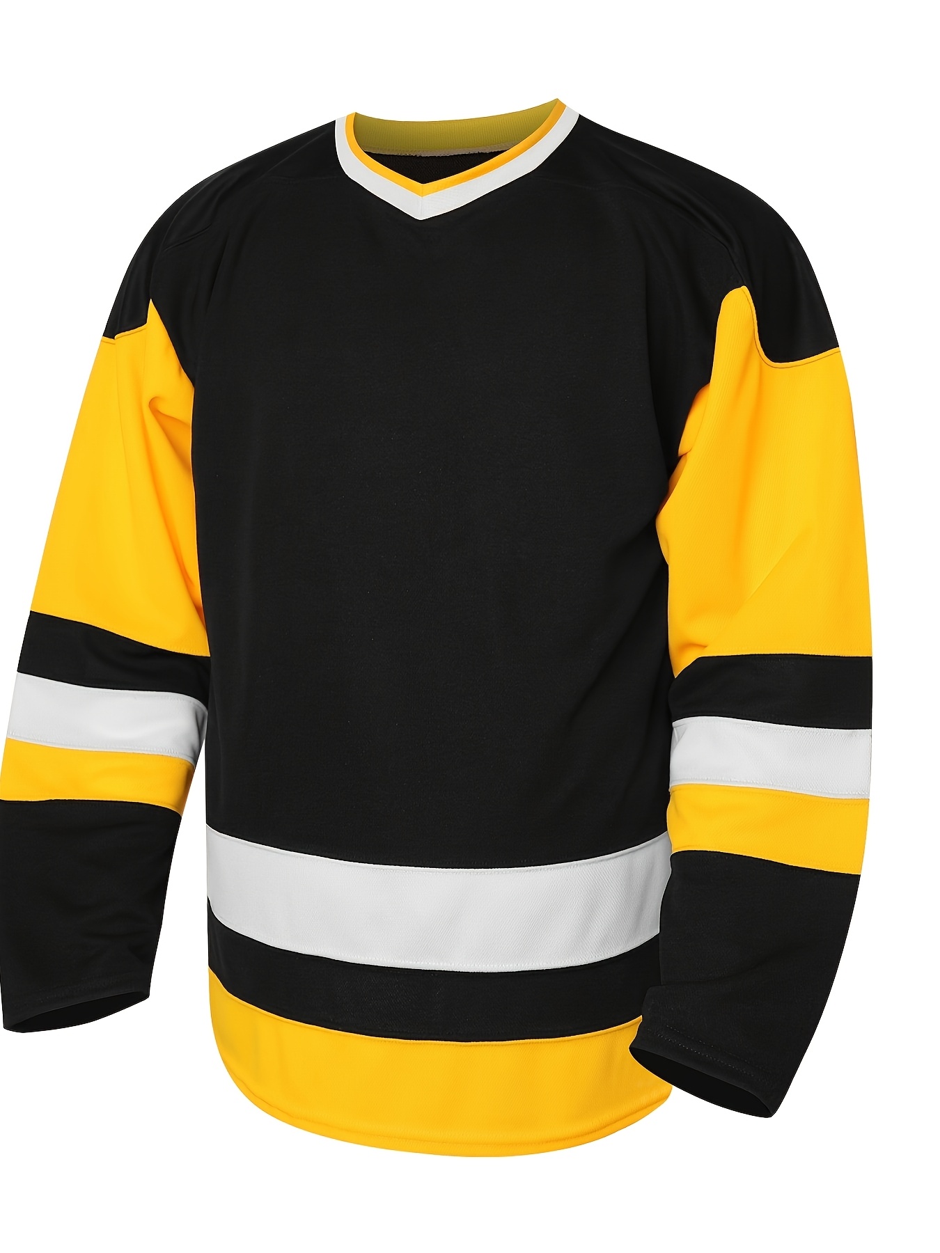 1pc Men's V-Neck Ice Hockey Jersey - 100% Polyester, Embroidered Striped & Solid Color, Breathable Knit Fabric, Loose Fit for Training & Casual Wear