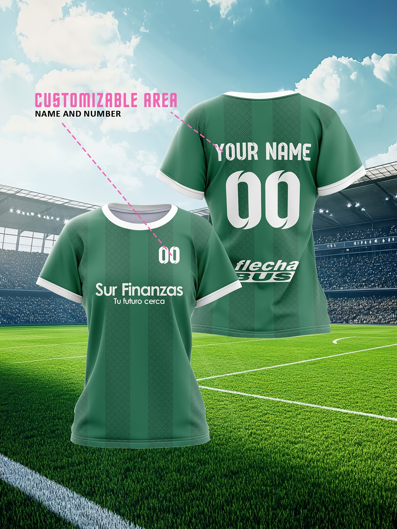 Custom Soccer Jersey Personalized with Name & Number - Green & White Striped Football Shirt, Non-Stretch Fabric for Soccer, Baseball, Gym, Team Uniforms - Custom Sports Apparel for Players & Fans, Outdoor Sports Gear, Striped Design, Summer Sportswear
