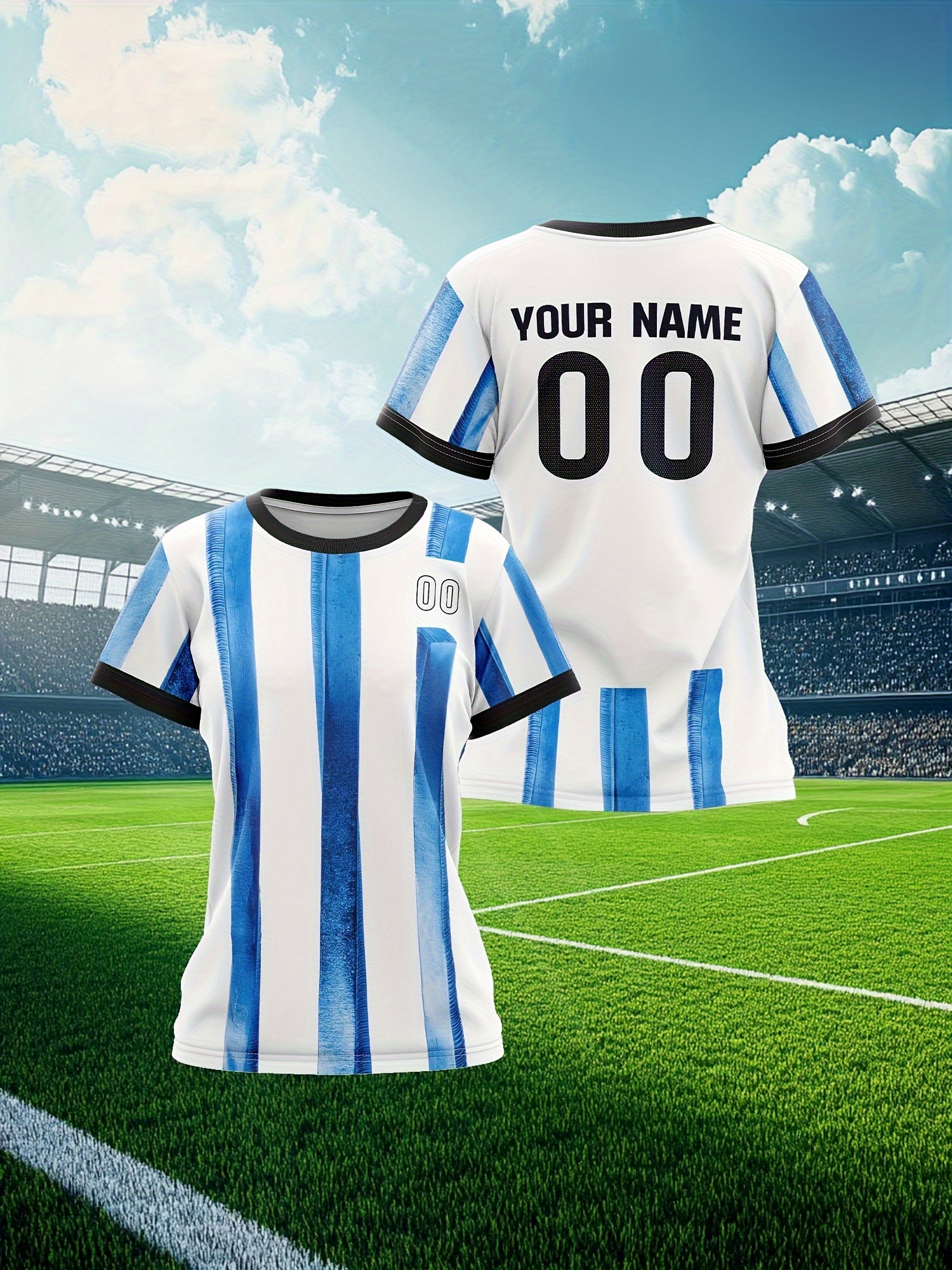 Customizable Women'S Soccer Jersey - Personalized Team & Number, Breathable Quick-Dry Athletic Shirt for Training, Fitness, and Casual Wear, Blue & White Striped Design with YASUDA Logo, Soccer Accessories, PLUS SIZE