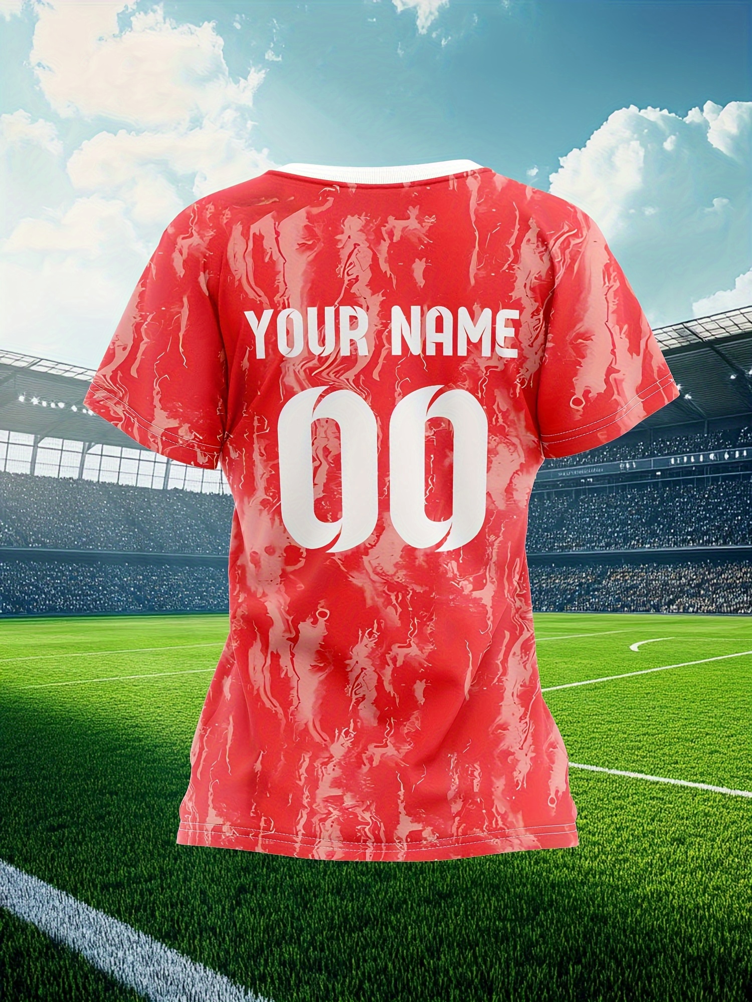 Women's Custom Soccer Jersey Personalized Name & Number - Two-Tone Red/White Athletic top - Non-Stretch Fabric for Soccer, Baseball, Gym - Custom Sports Apparel Gift for Female Players, Outdoor Sports Attire, Vibrant Stripe Design, Durable Sportswear