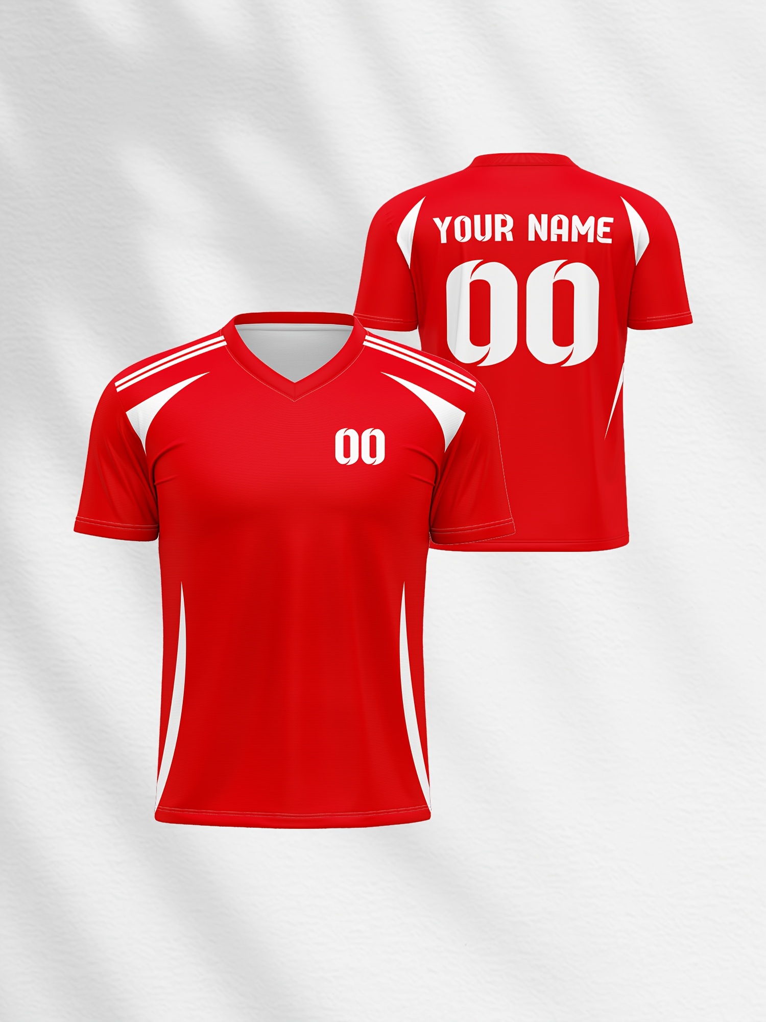 1pc Customizable V-Neck Soccer Jersey for Kids - 100% Polyester Knit Fabric, All-Over Print, Personalized Name & Number, Regular Fit for Boys & Girls, Ideal for Sports, Casual Wear & Outdoor Activities - Spring/Summer/Fall Collection