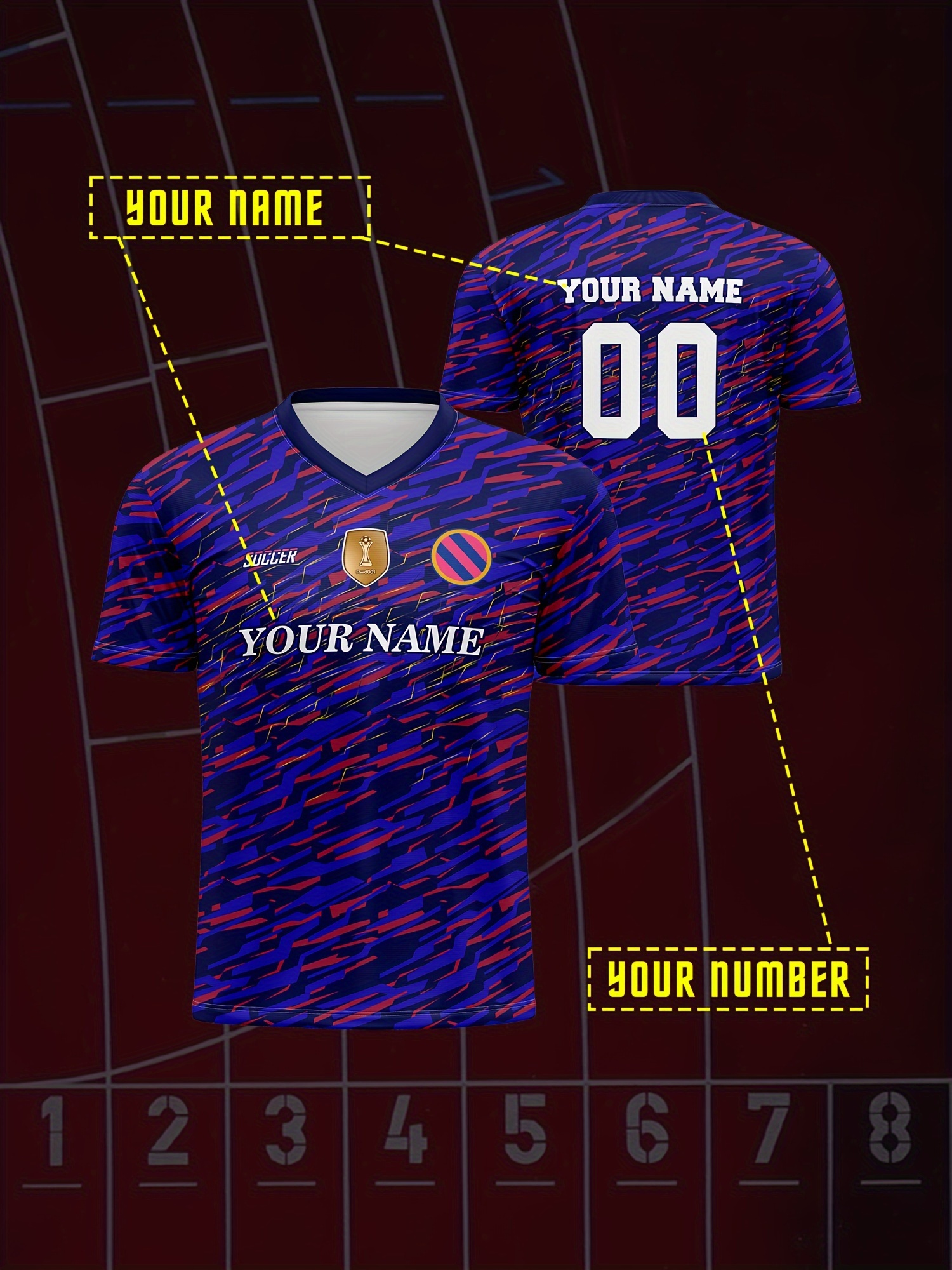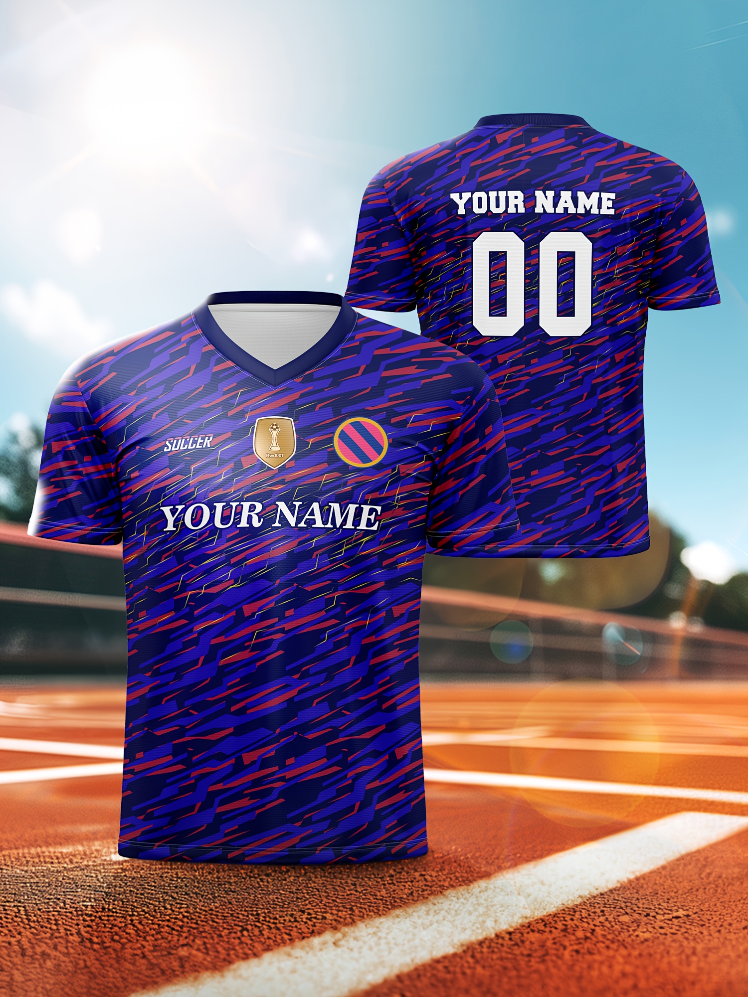 Customizable Soccer Jersey for Kids, V-Neck, Breathable Polyester, Full-Print, Spring/Summer/Autumn, Regular Fit, for Boys & Girls, Sports & Casual Outdoor Activities, Training, Football, Beach, Birthday