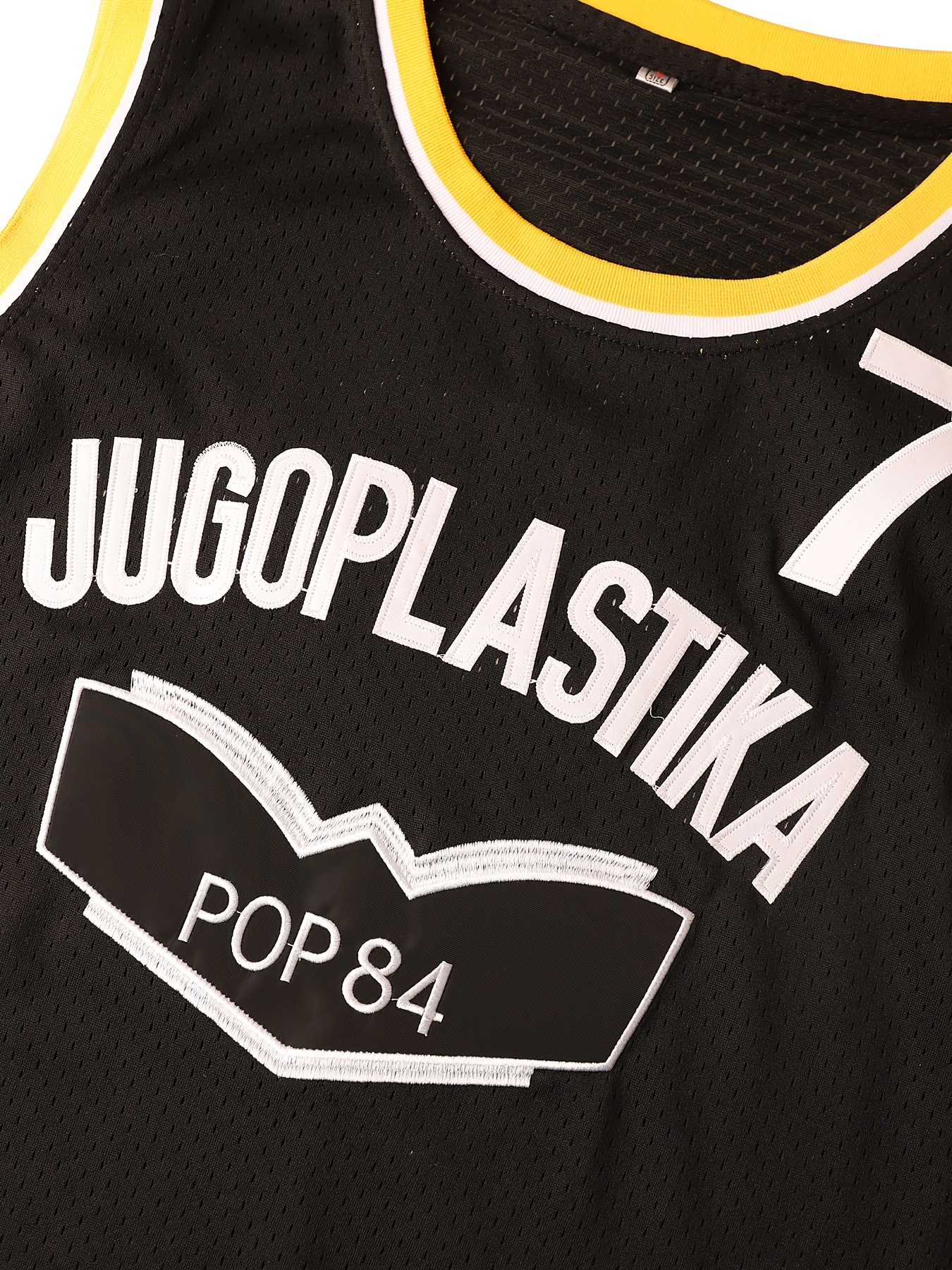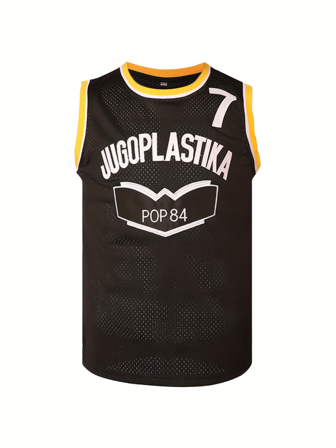 JUGOPlastika Men's #7 Basketball Jersey - Black with Yellow Accents, 100% Polyester Loose Fit Sportswear, Logo & Number, All-Season Machine Washable for Training, Games, Casual & Holiday Wear, Basketball Accessories
