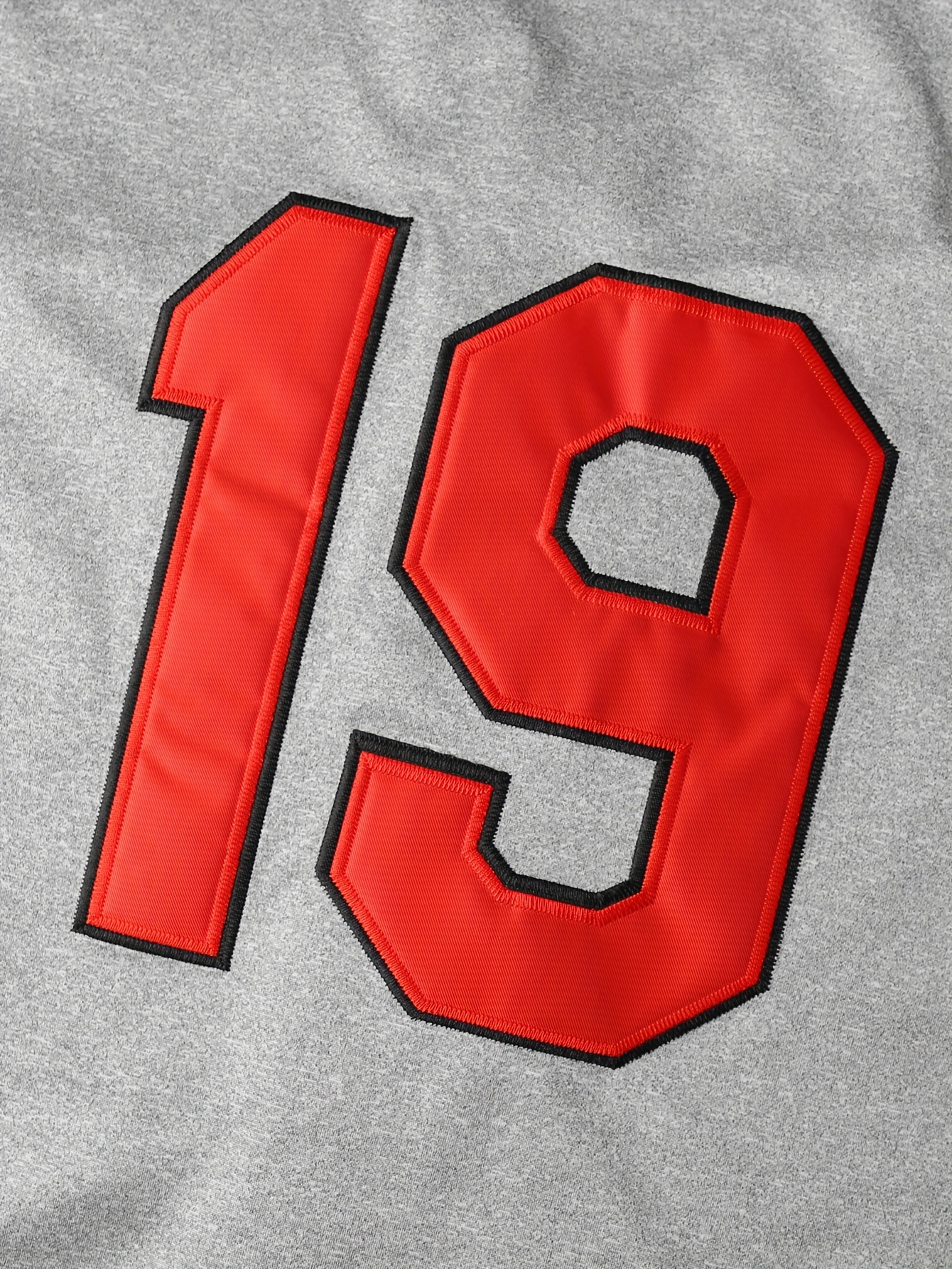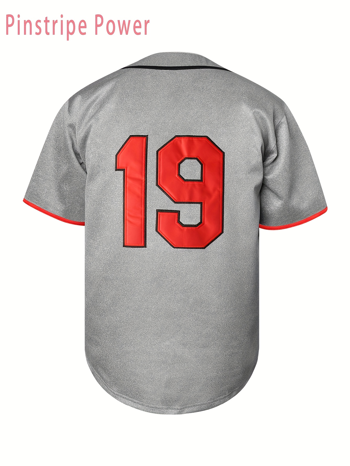 Men'S # 19 Gray V-neck Baseball Shirt, Breathable Polyester Fiber Loose Sports Top With Slight Elasticity, Suitable For Training, Hiking, And Casual Wear S-3XL