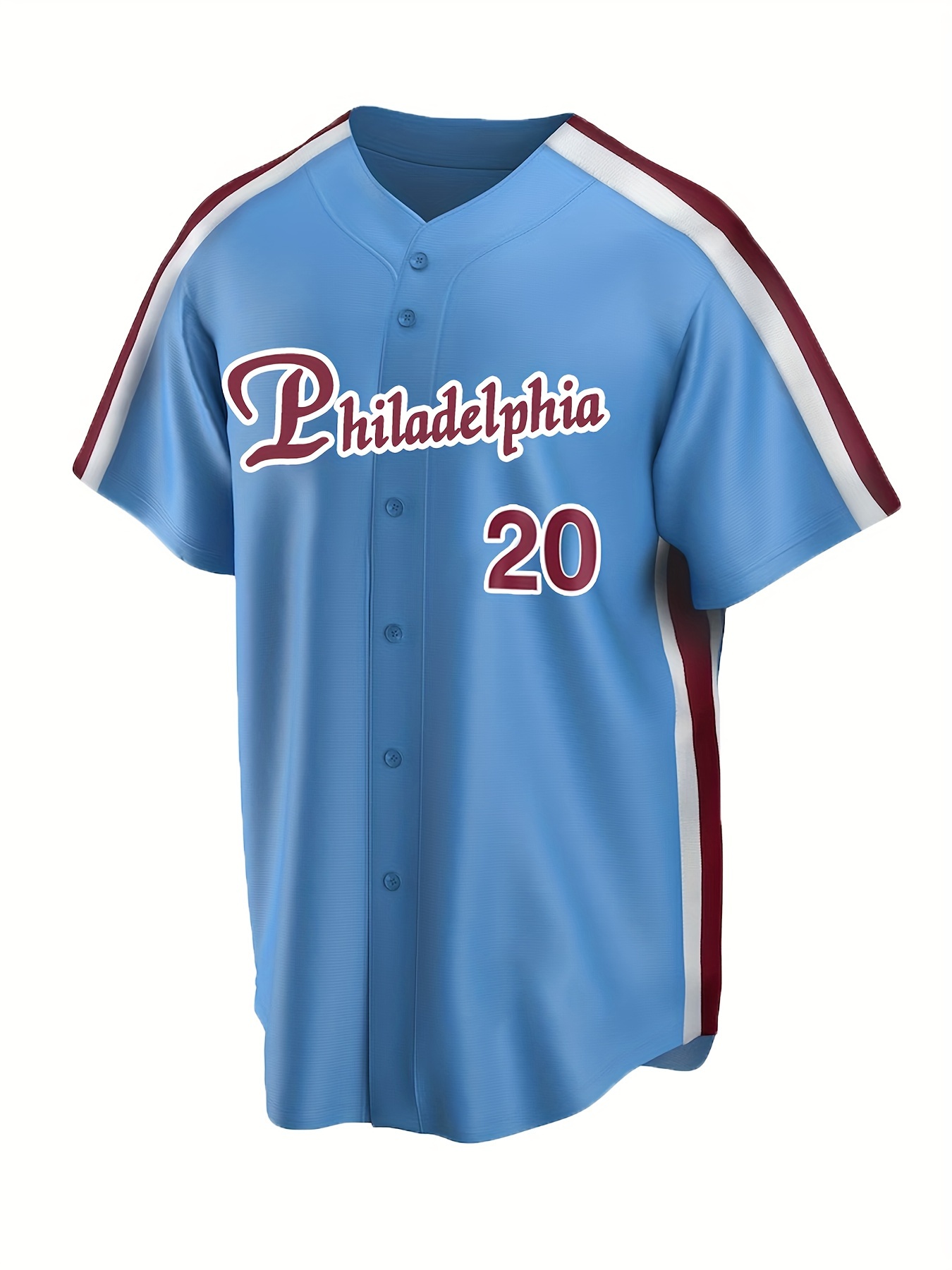 Men'S #20 Blue Baseball Jersey, Classic Retro Letter Embroidery Design Breathable Short Sleeve Shirt For Training
