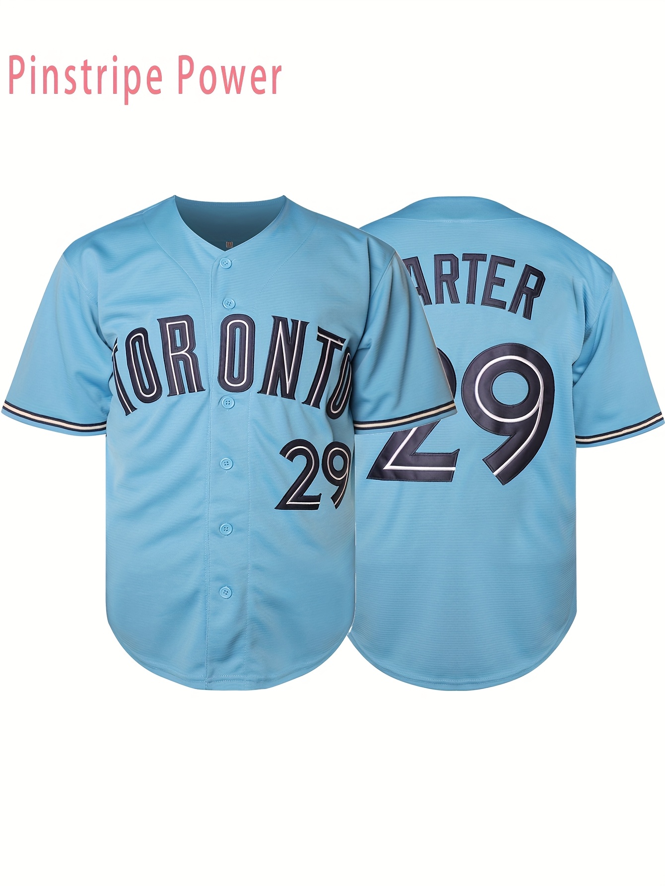 Men'S # 29 Blue Embroidered Baseball Shirt Suitable For Training And Casual Wear Durable Polyester S-3XL