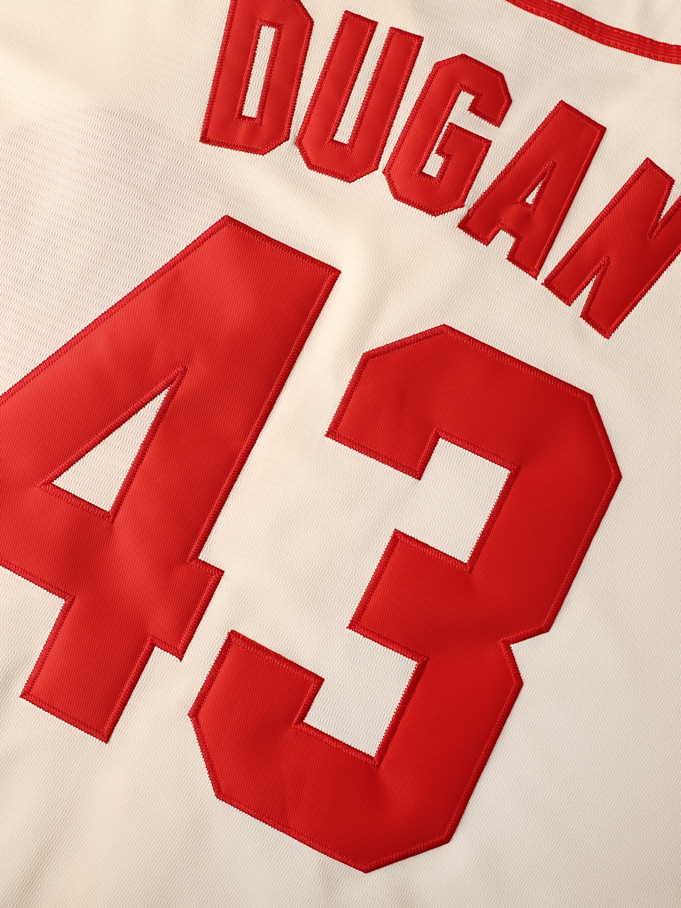 Men's #43 Retro Baseball Jersey - Beige V-Neck Button-Up Shirt with Print Logo, 100% Polyester Loose Fit for Sports, Casual & Parties, Machine Washable, Sports Casual Wear | Vneck Jersey | Comfortable Fit