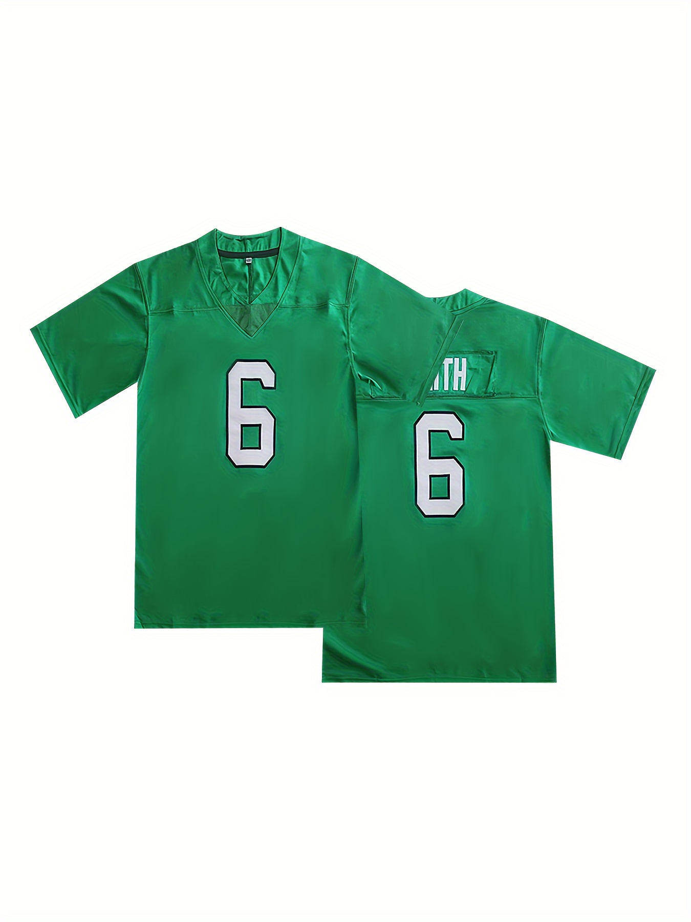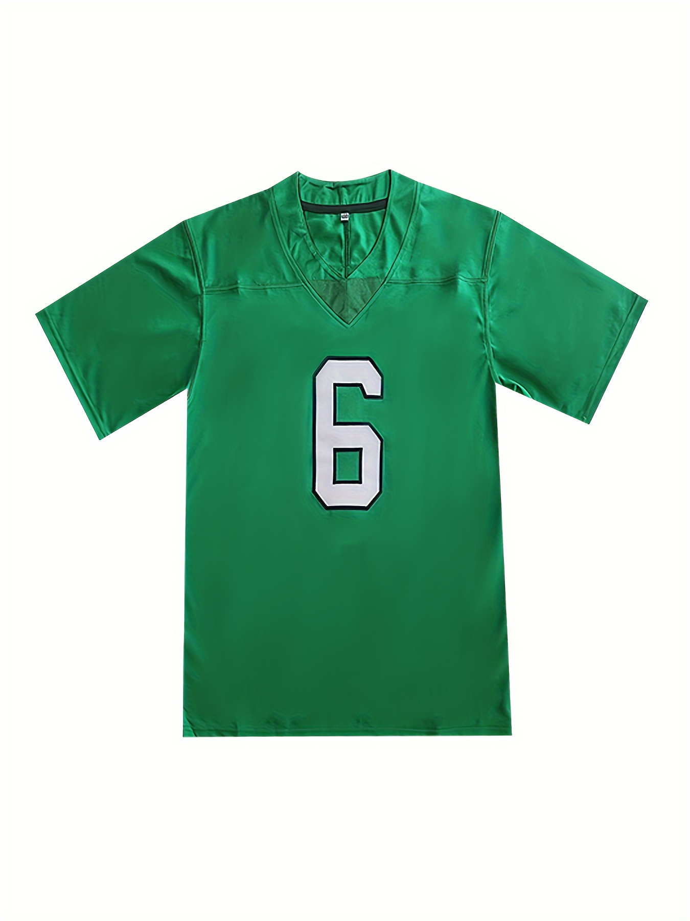 Men'S #6 Embroidered V-Neck Rugby Jersey - Breathable Polyester, Short Sleeve, Perfect for Training & Casual Wear, Ideal for Outdoor Activities, Running & Sports - Machine Washable
