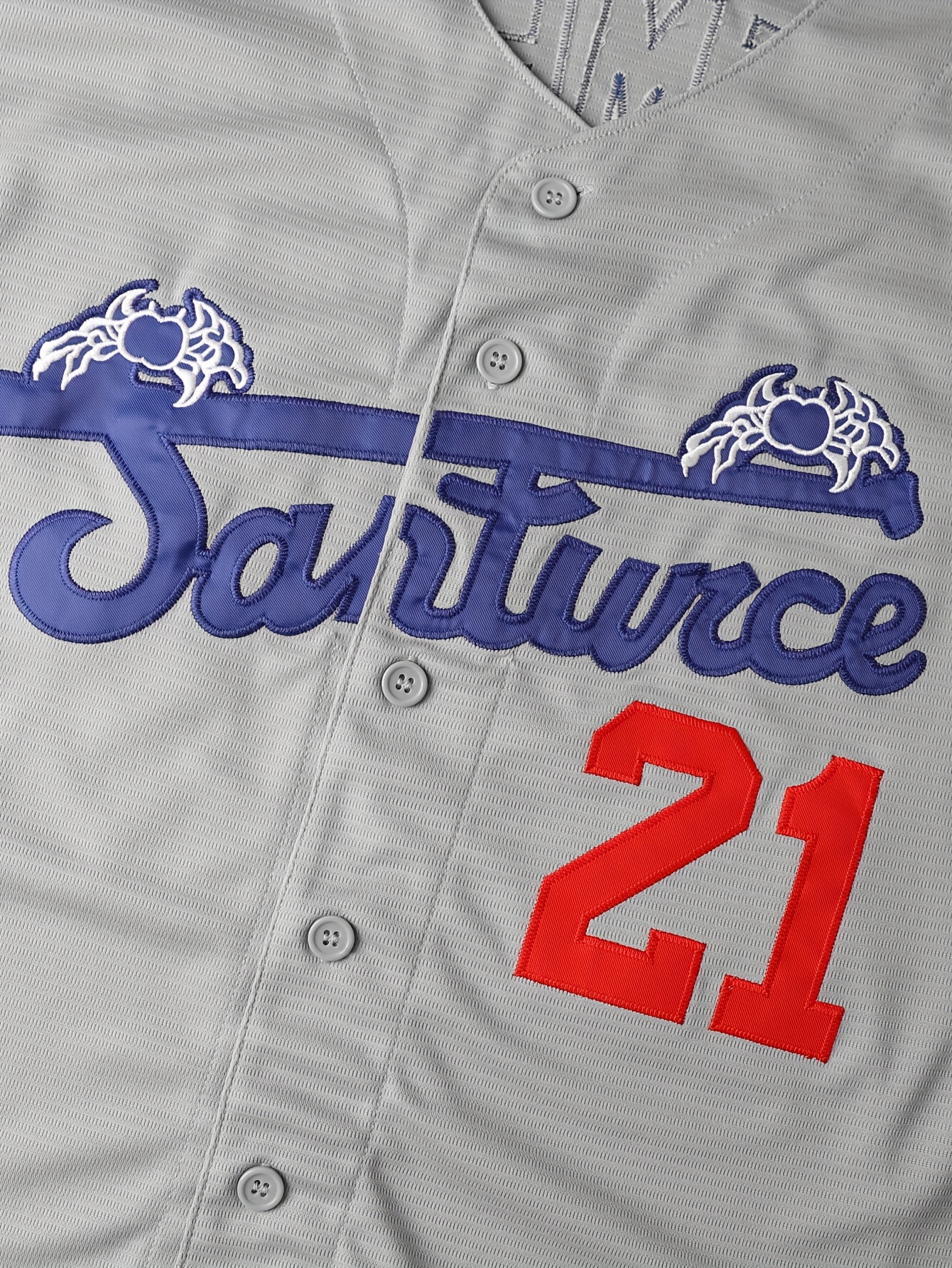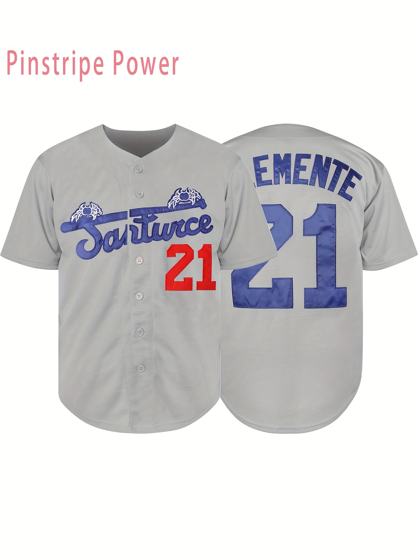 Men's Baseball Jacket #21 Grey Embroidered Saratoga & Pine Mountain Design - Loose Fit Stretch Polyester V-Neck Button-Up for Casual, Sports & Outdoor Activities (S-3XL)