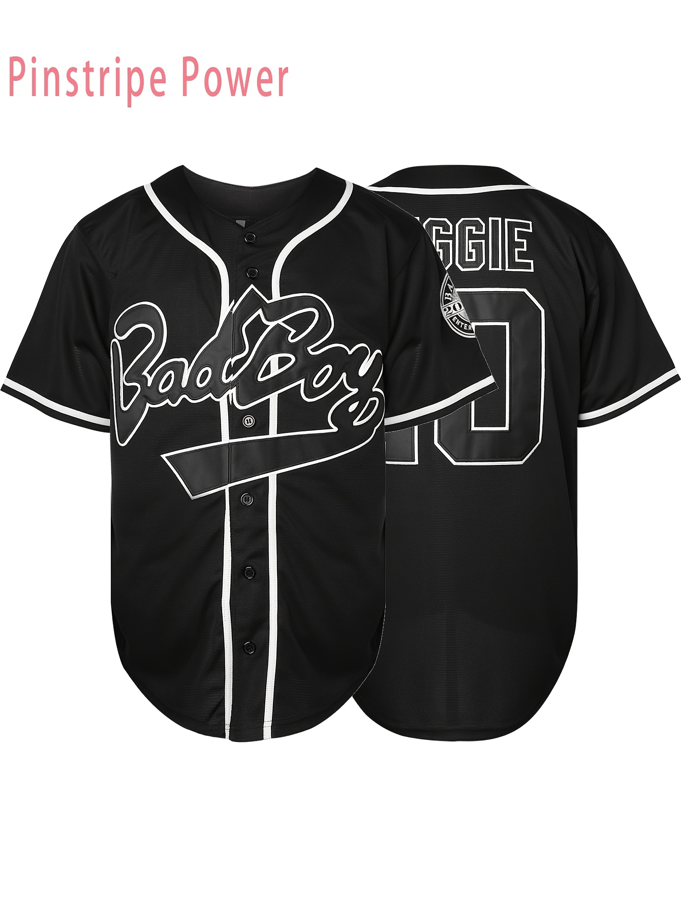 Men's Black #10 Baseball Jersey with Embroidered Letters & Numbers - Breathable V-Neck Loose Fit, Adjustable Button Closure, Machine Washable for Training, Games, Casual Wear (S-3XL)