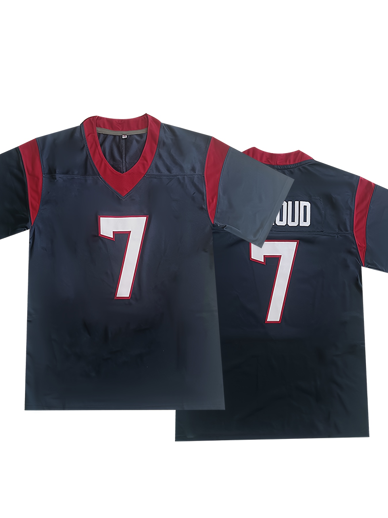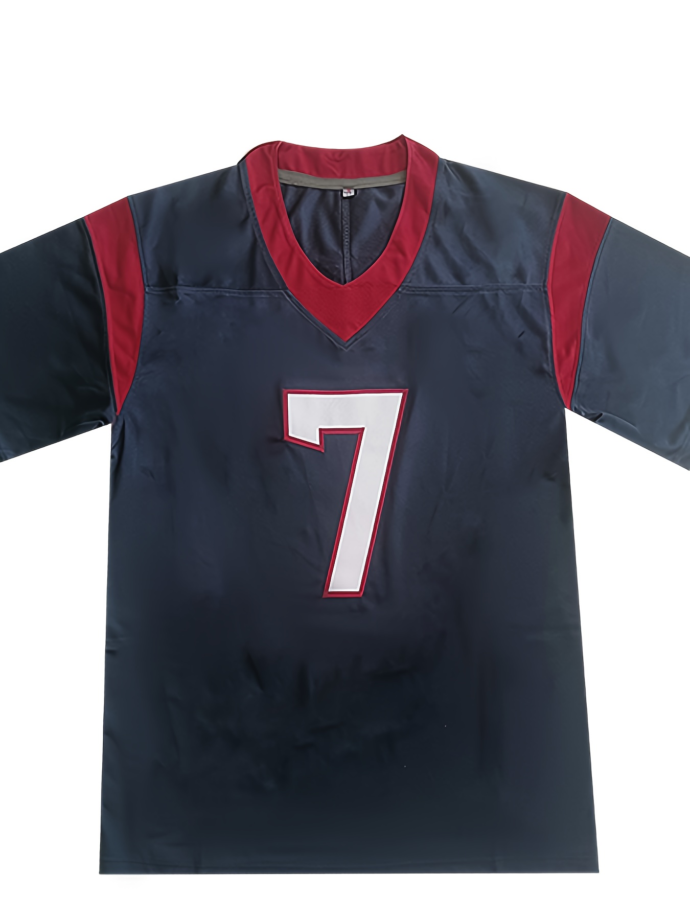 Men'S Blue #7 V-Neck Rugby Shirt, Breathable Polyester Sports Top, Classic Embroidered American Football Jersey, Loose Fit for Training, Running, Hiking & Outdoor Activities, All-Season Wear