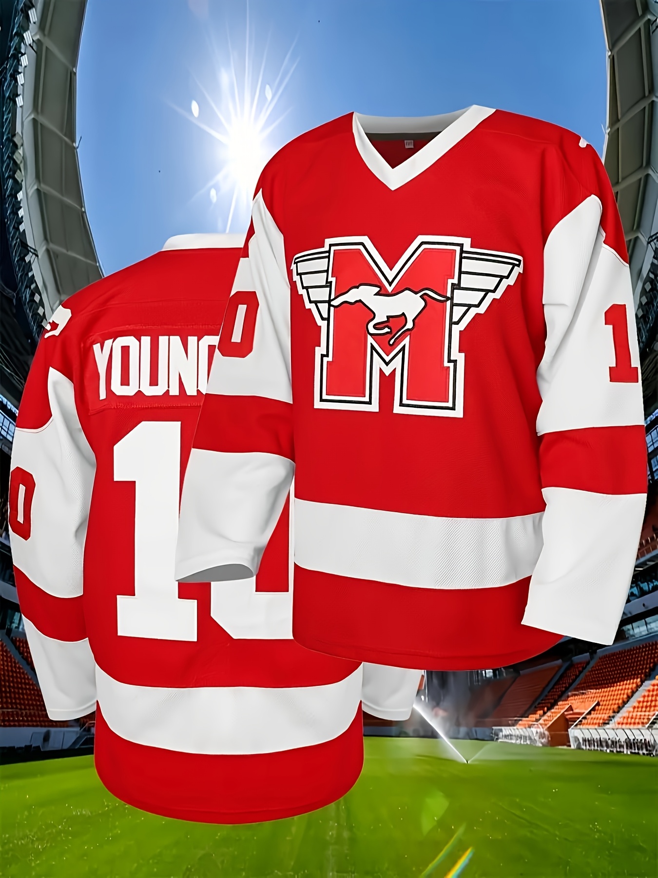 Men's Ice Hockey Jersey #10, Embroidered Alphabet & Number, Polyester Knit Fabric, V-Neck, Loose Fit, Machine Washable - Ideal for Sports, Casual Wear, Training, Hiking & Outdoor Activities