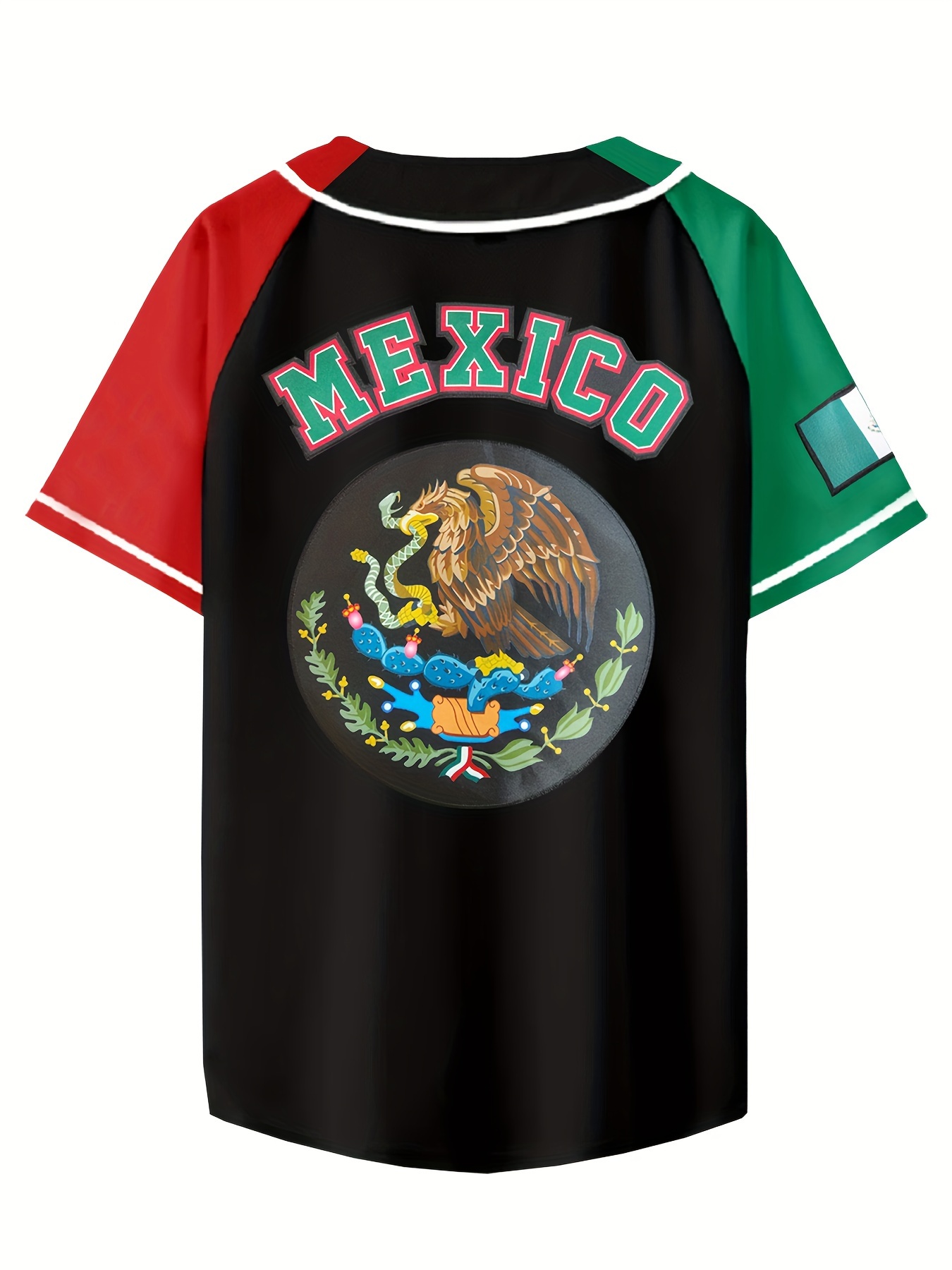Men's Mexican Style Baseball Jersey - Retro Mexico Letter & Eagle Patriotic Design, Breathable V-Neck Button-Up Shirt with Raglan Sleeves, Loose Fit for Sports, Parties & Casual Wear, Cultural Event Attire, Detailing