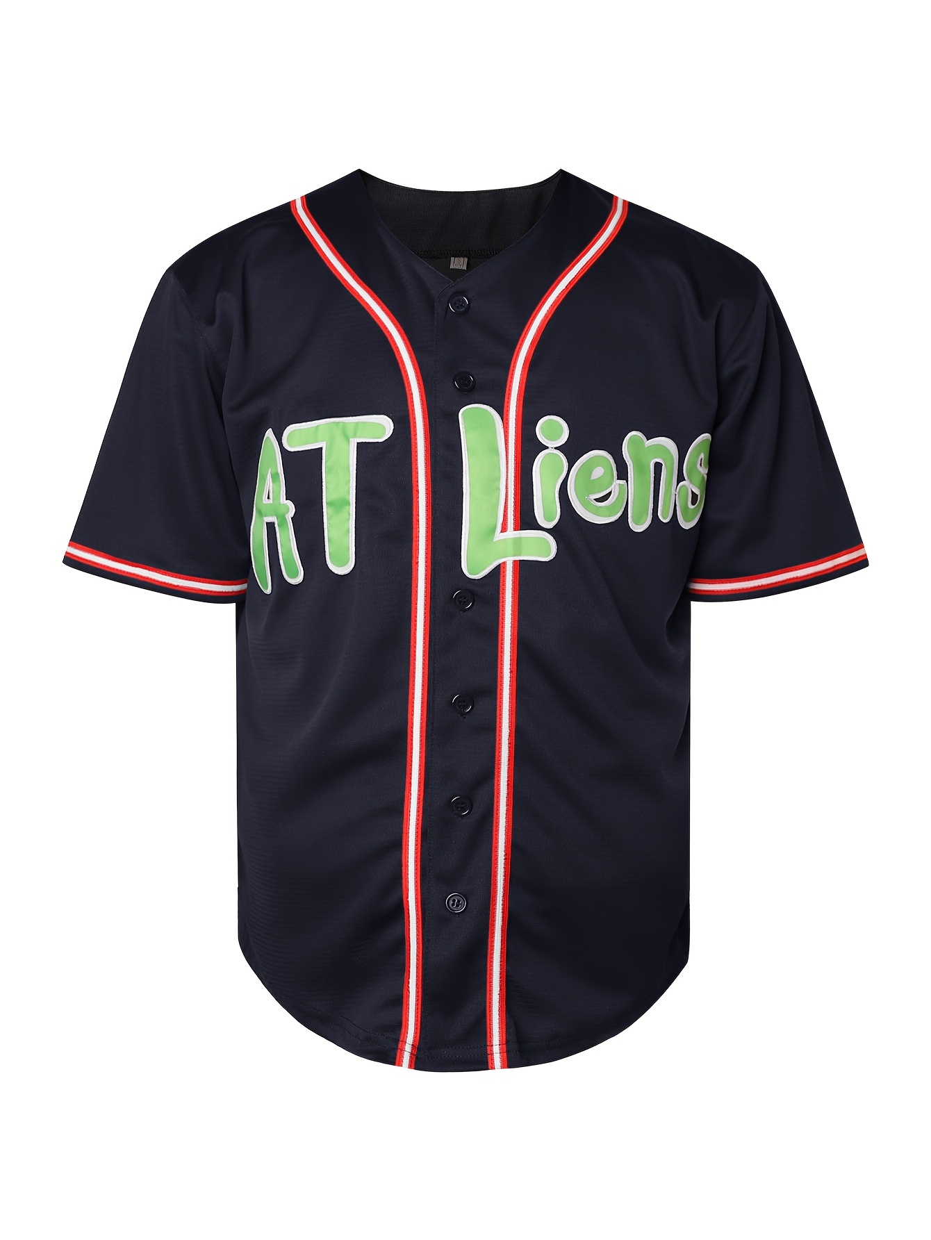 Men's Navy Blue Embroidered Baseball Jersey - V-Neck Loose Fit Polyester Sportswear with AT Liens & Number 96 Design, Machine Washable for All-Season Casual, Sports, Training, Parties, Sports Attire, Sporty Look, Durable Sportswear
