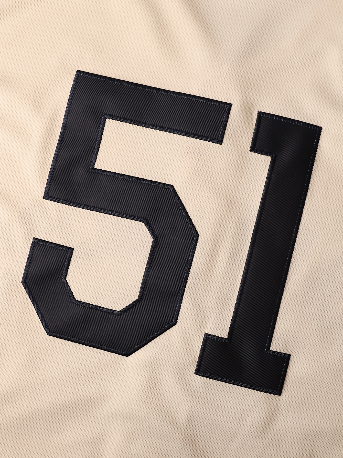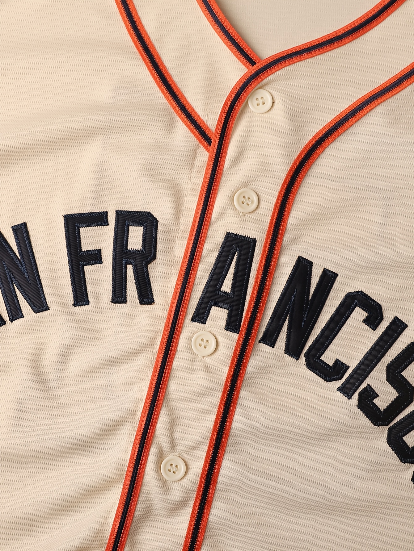 Men's Retro Classic Baseball Jersey #51 - Beige with Red & Blue Accents, Embroidered San Francisco & Number, Breathable V-Neck Button-Up Loose Fit for Training, Competition, Casual & Holiday Wear, Sports Apparel | Sporty Vneck | Embroidered Detailing