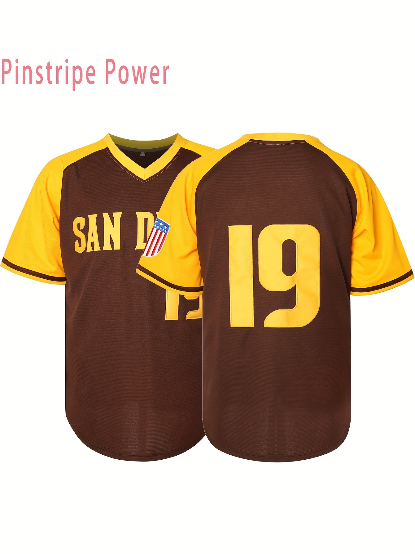Men's San Diego Letter & Number 19 Baseball Sweatshirt - Brown V-Neck Polyester Pullover, Loose Fit for Casual Team Sports, Outdoor Activities & Parties (Sizes S-3XL), Sports Pullover | Sporty Design | Durable Sportswear