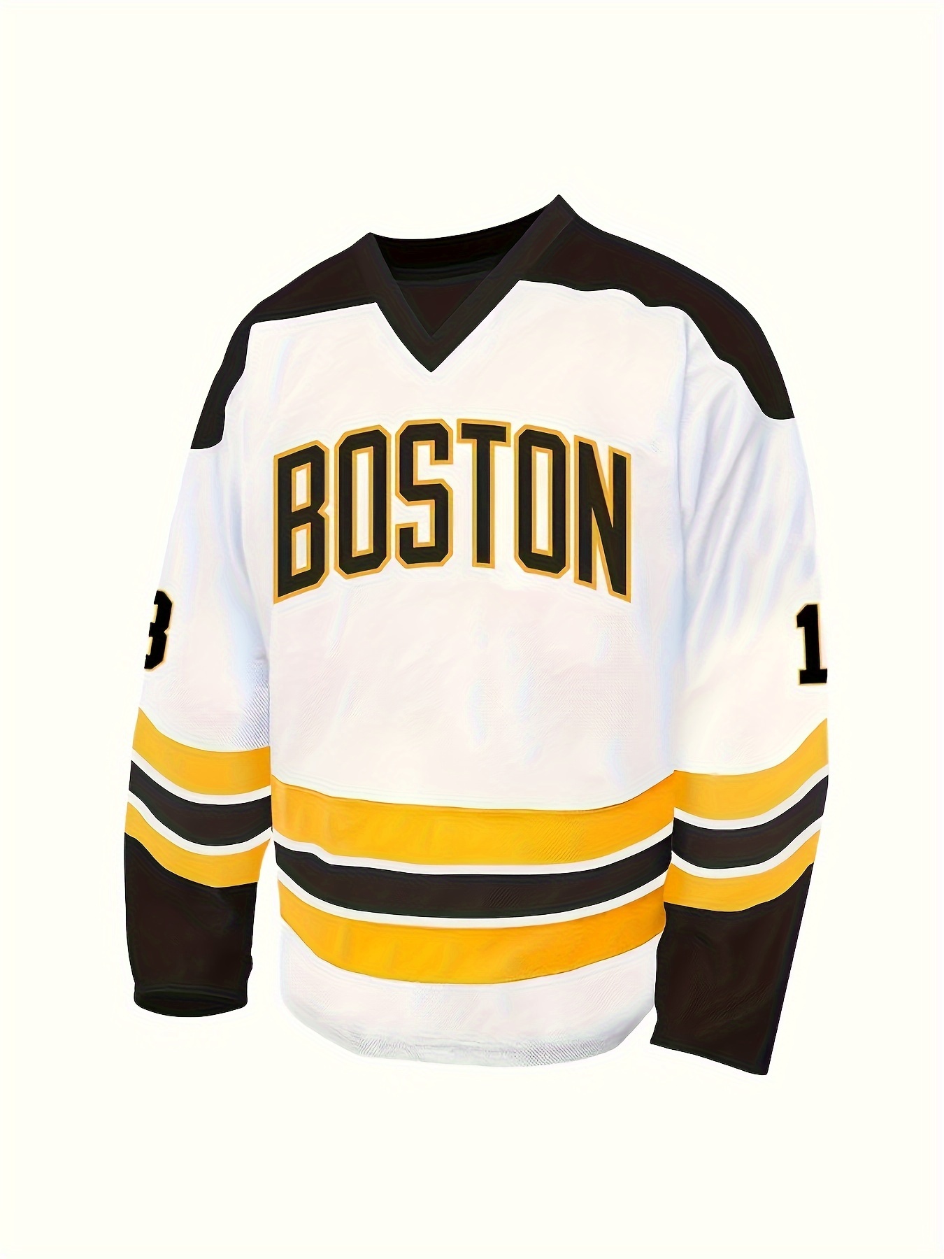 Men's Size 18 White Ice Hockey Jersey, Vintage Classic Embroidery, Breathable Pullover Sports Shirt, V-neck, Polyester, Sporty Style