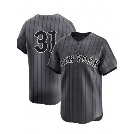 Men'S #31 Stripe City Edition Baseball Jersey, Classic Retro Letter Embroidery Design Breathable Short Sleeve T-Shirt For Training Competition