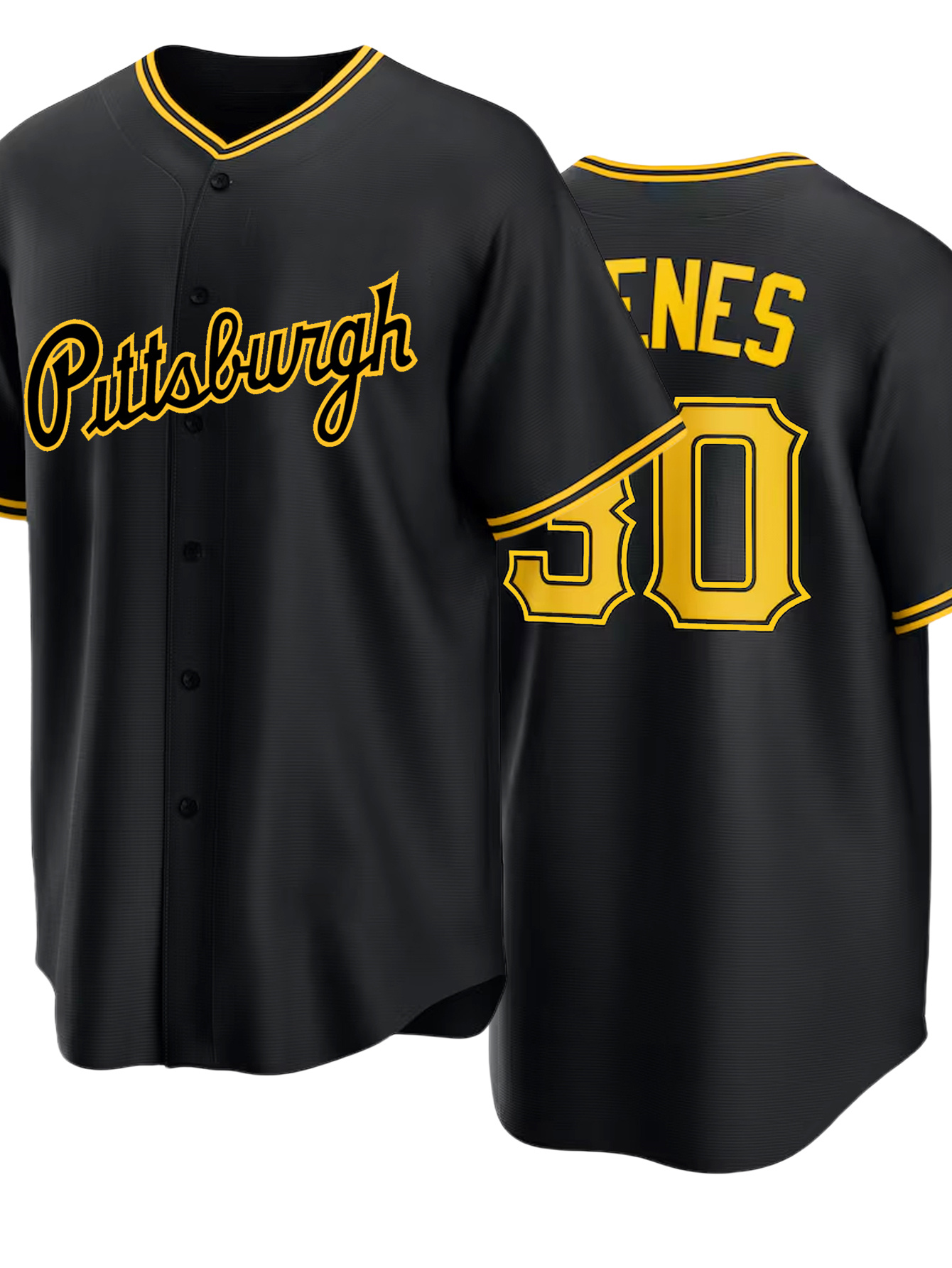 Men'S Black # 30 Baseball Jersey with Classic Letter Embroidery Design, Breathable Button Style Short Sleeved Shirt, Suitable for Training And Games