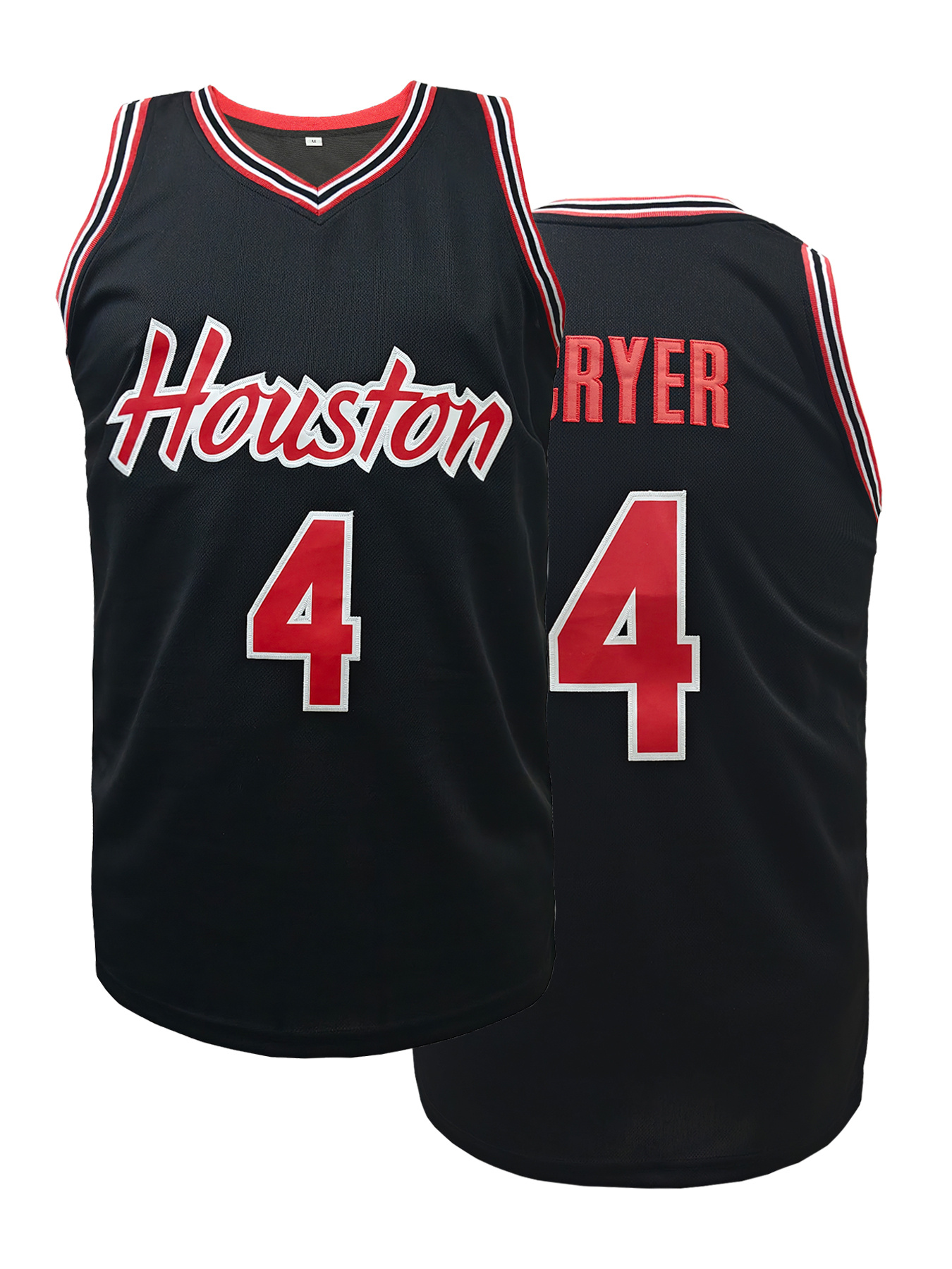 Men's Houston Basketball Jersey #4 Sleeveless Breathable 100% Polyester V-Neck Loose Fit with Lettering & Number for Training, Summer Sports, Casual Wear - Machine Washable