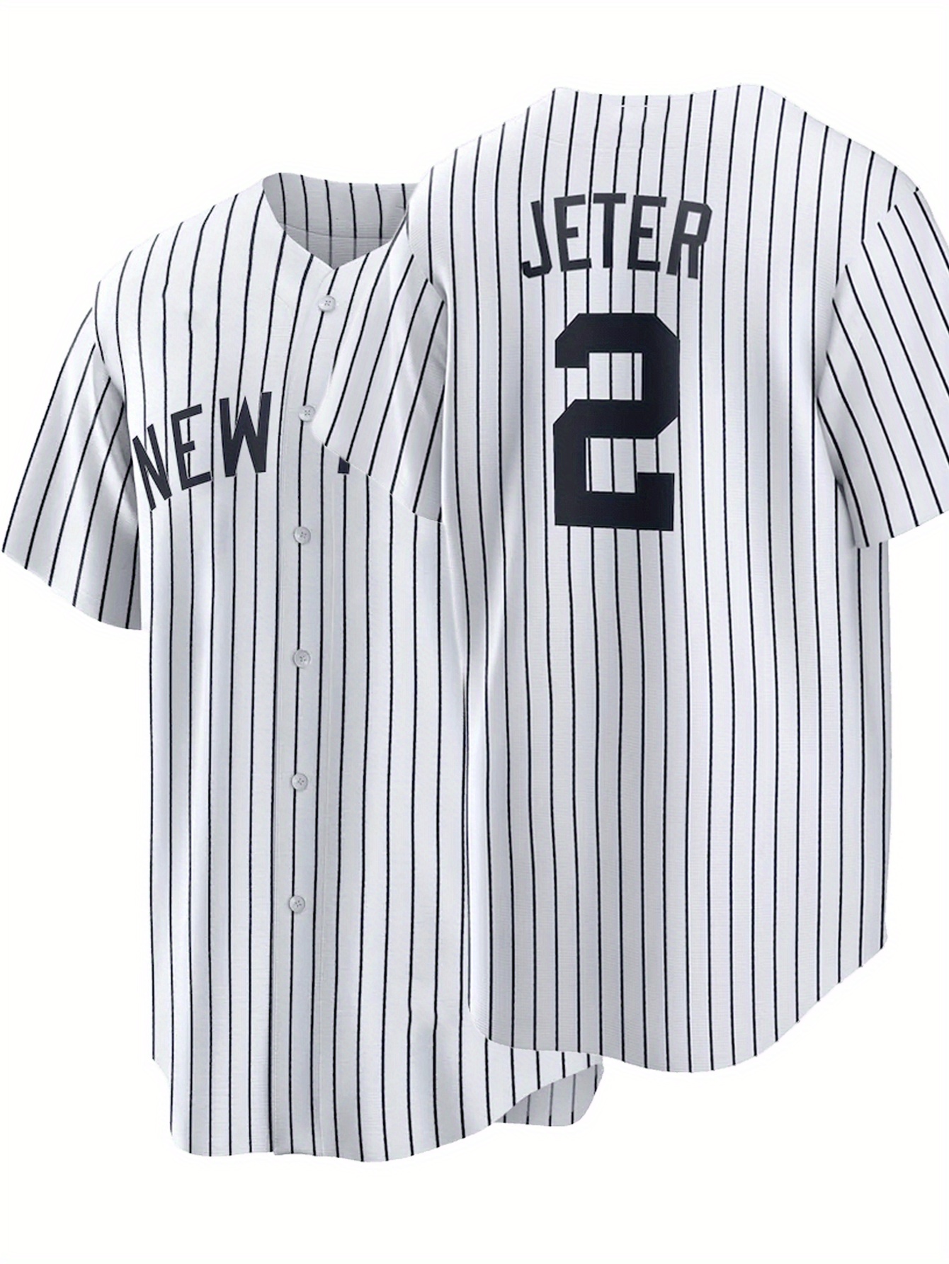 Men's White Striped #2 Baseball Shirt - Breathable Button-Up V-Neck with Classic Letter Embroidery, Loose Fit for Training, Games & Casual Wear | All-Season Sportswear for Men & Teens, Baseball Jersey
