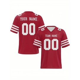 Customizable Football Jersey - Personalized Team & Number, V-Neck Short Sleeve, Breathable Fabric, Perfect for Sports & Casual Wear, Summer Sports Apparel, Sporty Clothing, Comfortable Fit