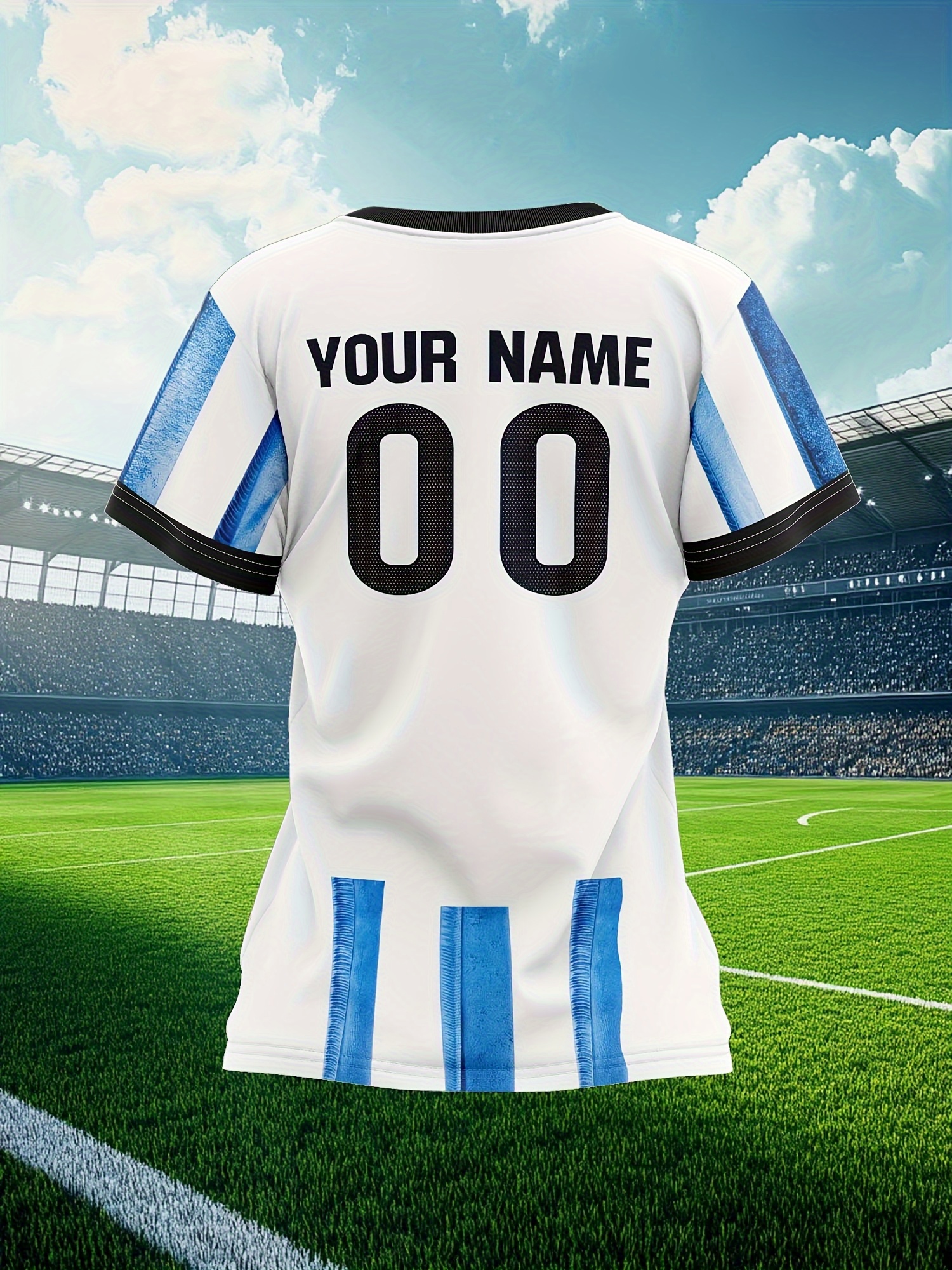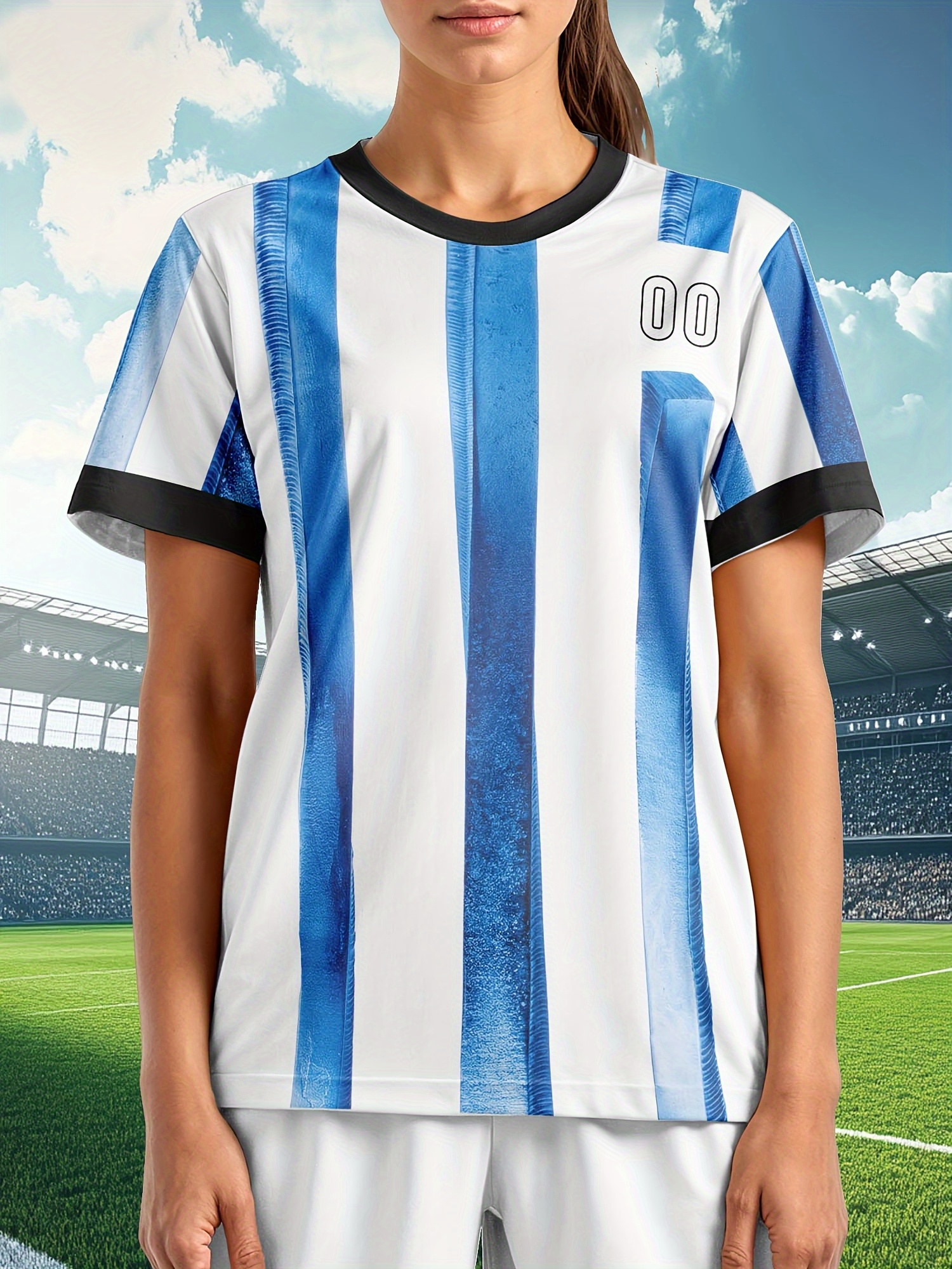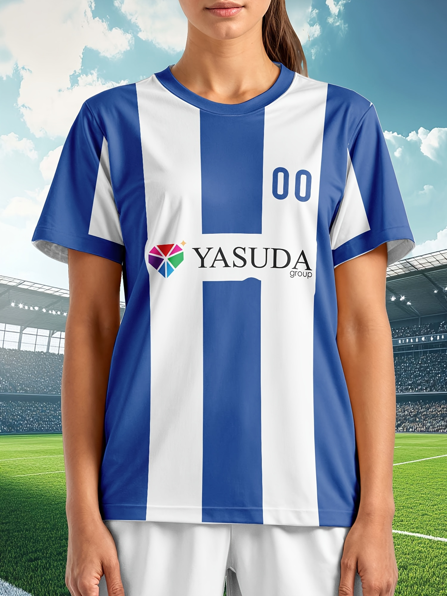 Customizable Women'S Soccer Jersey - Personalized Team & Number, Breathable Quick-Dry Athletic Shirt for Training, Fitness, and Casual Wear, Blue & White Striped Design with YASUDA Logo, Soccer Accessories, PLUS SIZE