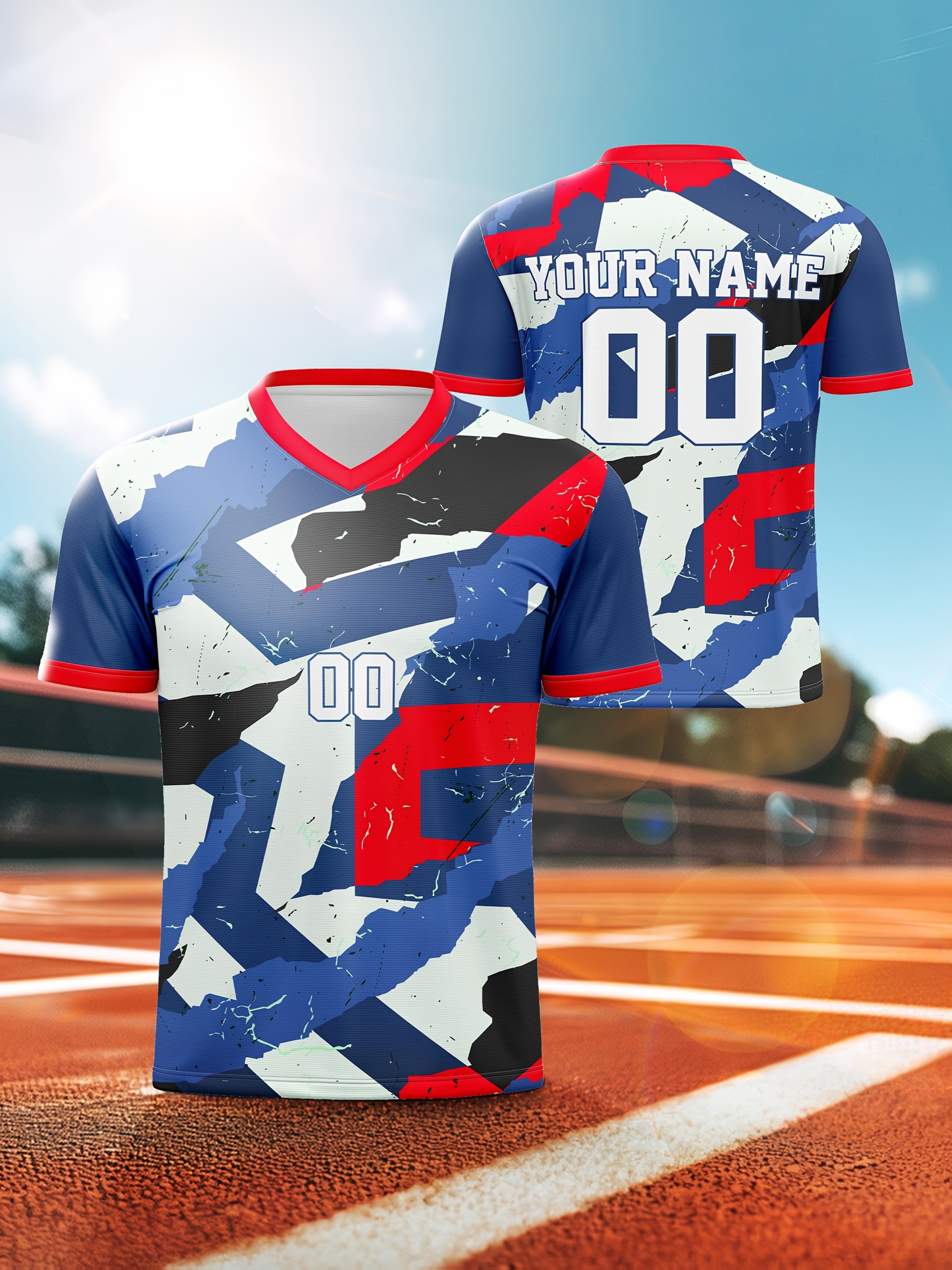 1pc Customizable Soccer Jersey for Kids - V-Neck, All-Season Polyester Sports Shirt with Personalized Name & Number, Medium Stretch Knit Fabric, Ideal for Training, Casual & Outdoor Activities - Unisex Design for Boys & Girls