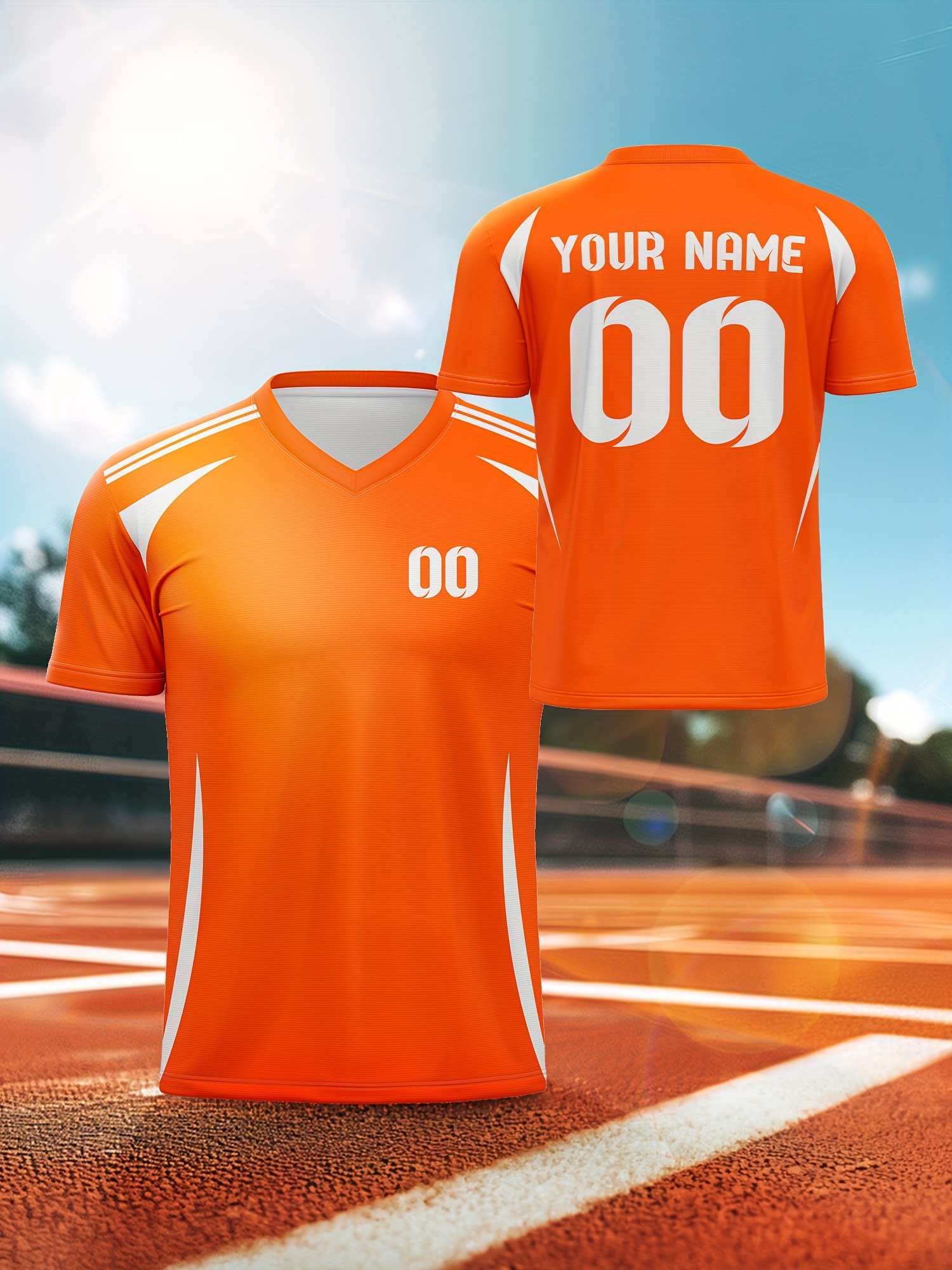 1pc Customizable V-Neck Soccer Jersey for Kids - 100% Polyester Knit Fabric, All-Over Print, Personalized Name & Number, Regular Fit for Boys & Girls, Ideal for Sports, Casual Wear & Outdoor Activities - Spring/Summer/Fall Collection