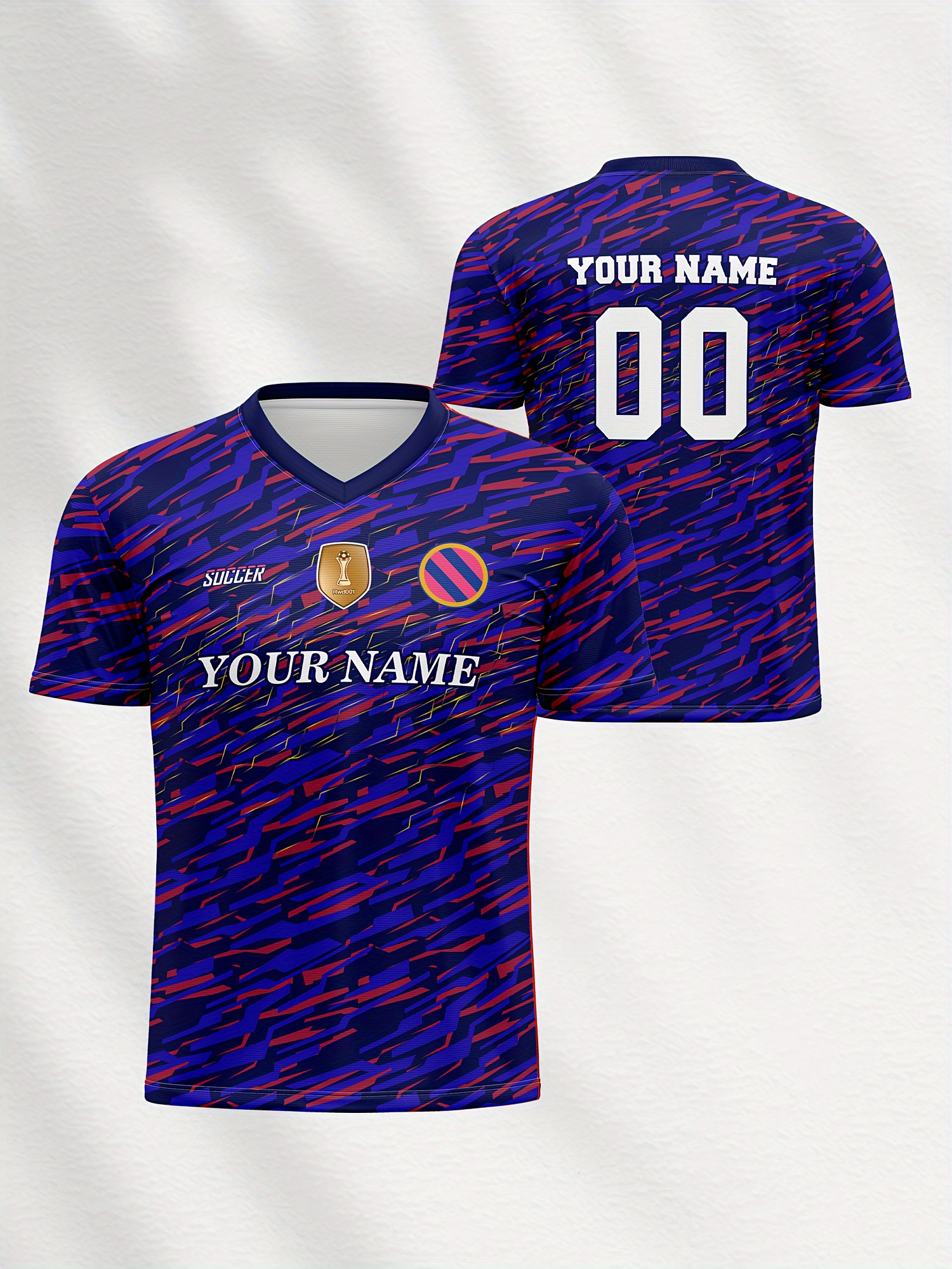 Customizable Soccer Jersey for Kids, V-Neck, Breathable Polyester, Full-Print, Spring/Summer/Autumn, Regular Fit, for Boys & Girls, Sports & Casual Outdoor Activities, Training, Football, Beach, Birthday