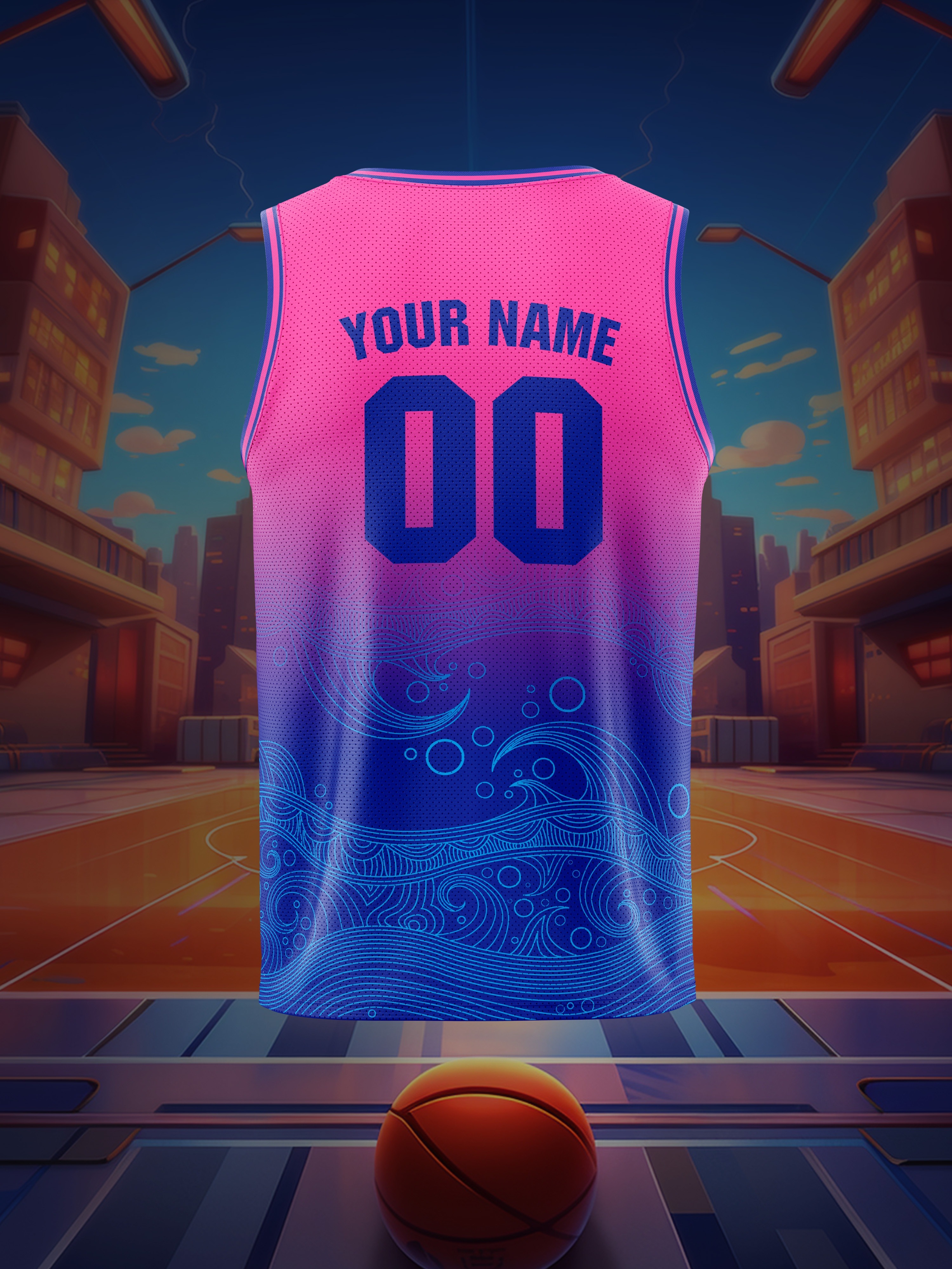 [Loose Basketball Jersey] Custom Sleeveless Basketball Jersey Shirt, Loose & Breathable | Boys Personalized Ocean Waves Pattern Top For Sports & Exercise