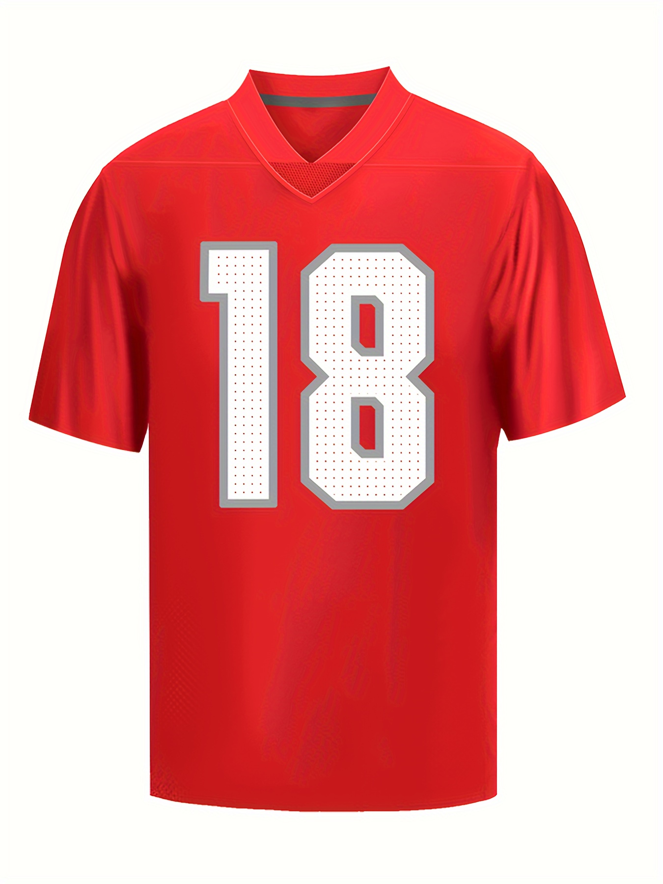Men'S #18 V-Neck Sports Jersey - Polyester, Embroidered, Breathable, Short Sleeve Shirt for Running, Training, Hiking, Casual & Festive Occasions, Universal Fit for Adult & Male - Red