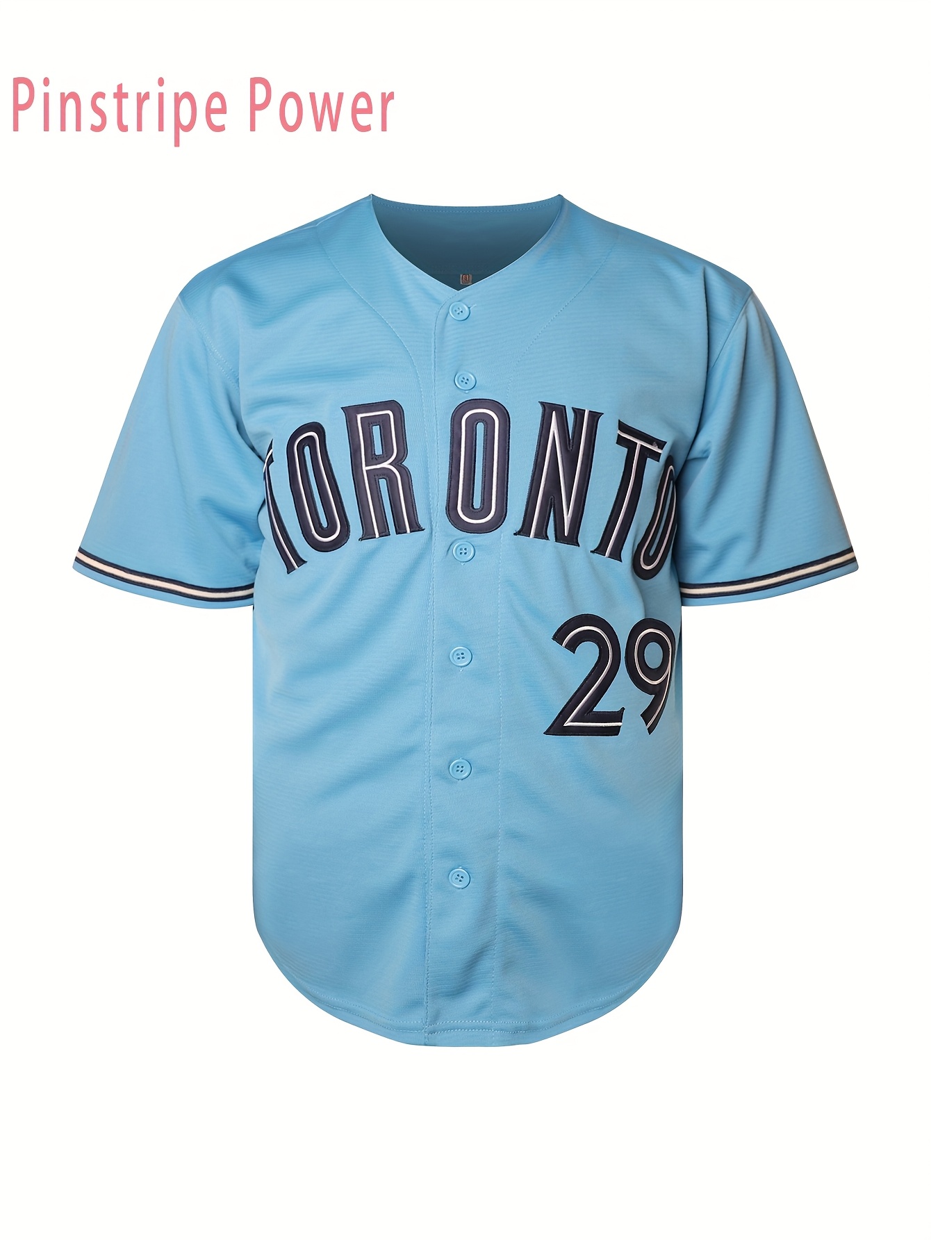 Men'S # 29 Blue Embroidered Baseball Shirt Suitable For Training And Casual Wear Durable Polyester S-3XL