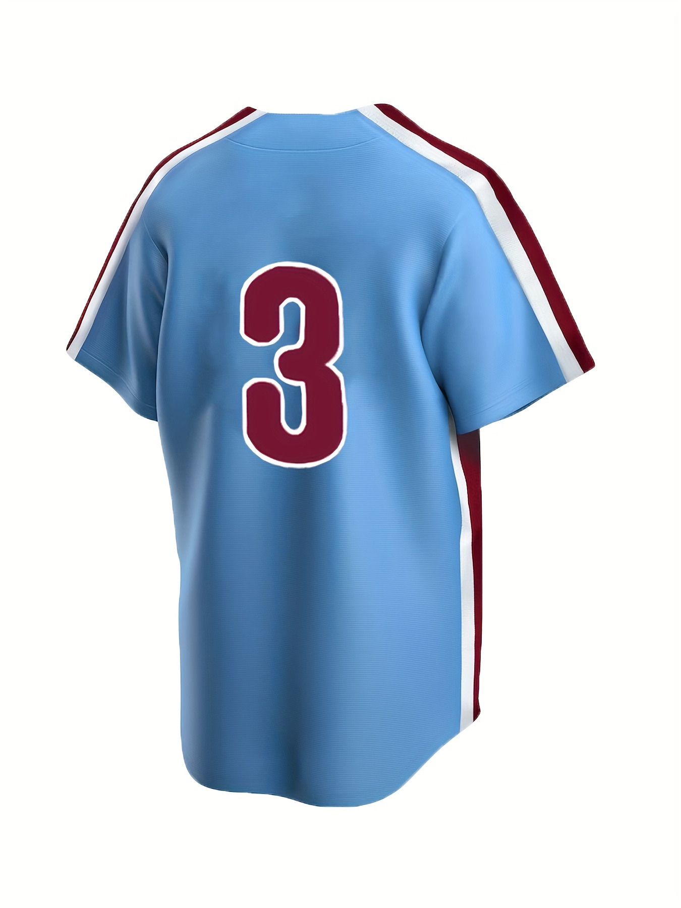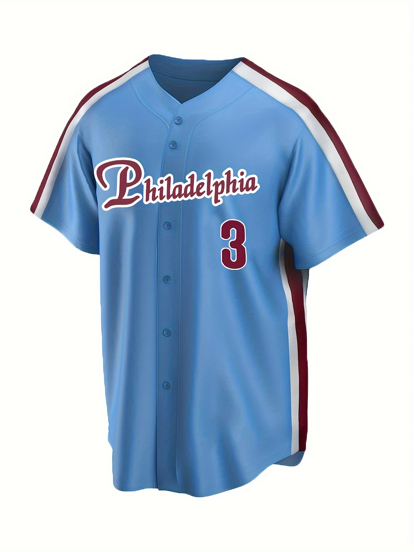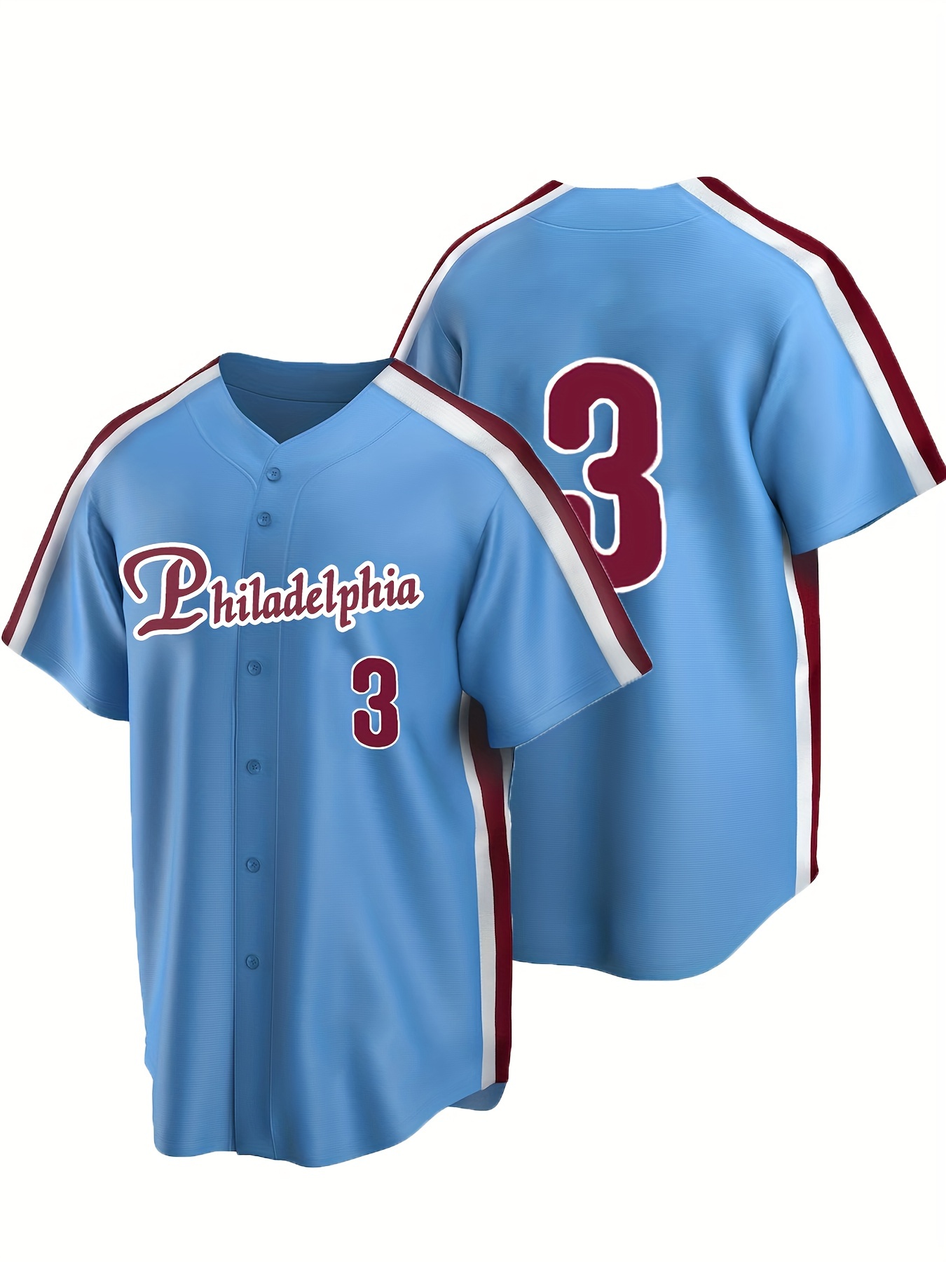 Men'S #3 Blue Baseball Jersey, Classic Retro Letter Embroidery Design Breathable Short Sleeve T-Shirt For Training Competition