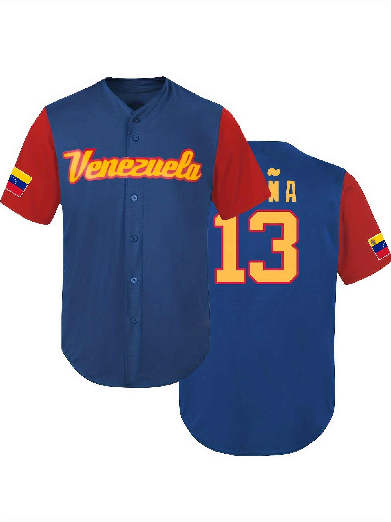 Men'S Number 13 & Venezuela Embroidery Color Block Baseball Jersey, Classic Breathable Short Sleeve T-Shirt For Training Competition