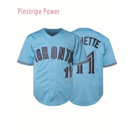 Men's #11 Blue Embroidered Baseball Jersey - V-Neck Button-Up Loose Fit Polyester Shirt for Training, Casual & Outdoor Sports | Machine Washable, Sizes S-3XL